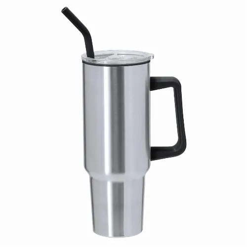 It is made of stainless steel with a black PP interior and is BPA-free. With a lid with a press-to-seal system, an easy-open dispenser and an included straw. The ergonomic handle provides enhanced comfort for carrying. It is ideal for your desk, table, or any surface where you can enjoy your favorite drink.Steel is one of the most demanded materials and can be found almost everywhere, from everyday products to major constructions. With countless properties, including durability and a high level of reusability, it is a much valued alternative for sustainable solutions. Properly treated, new resources of infinite use can be obtained.