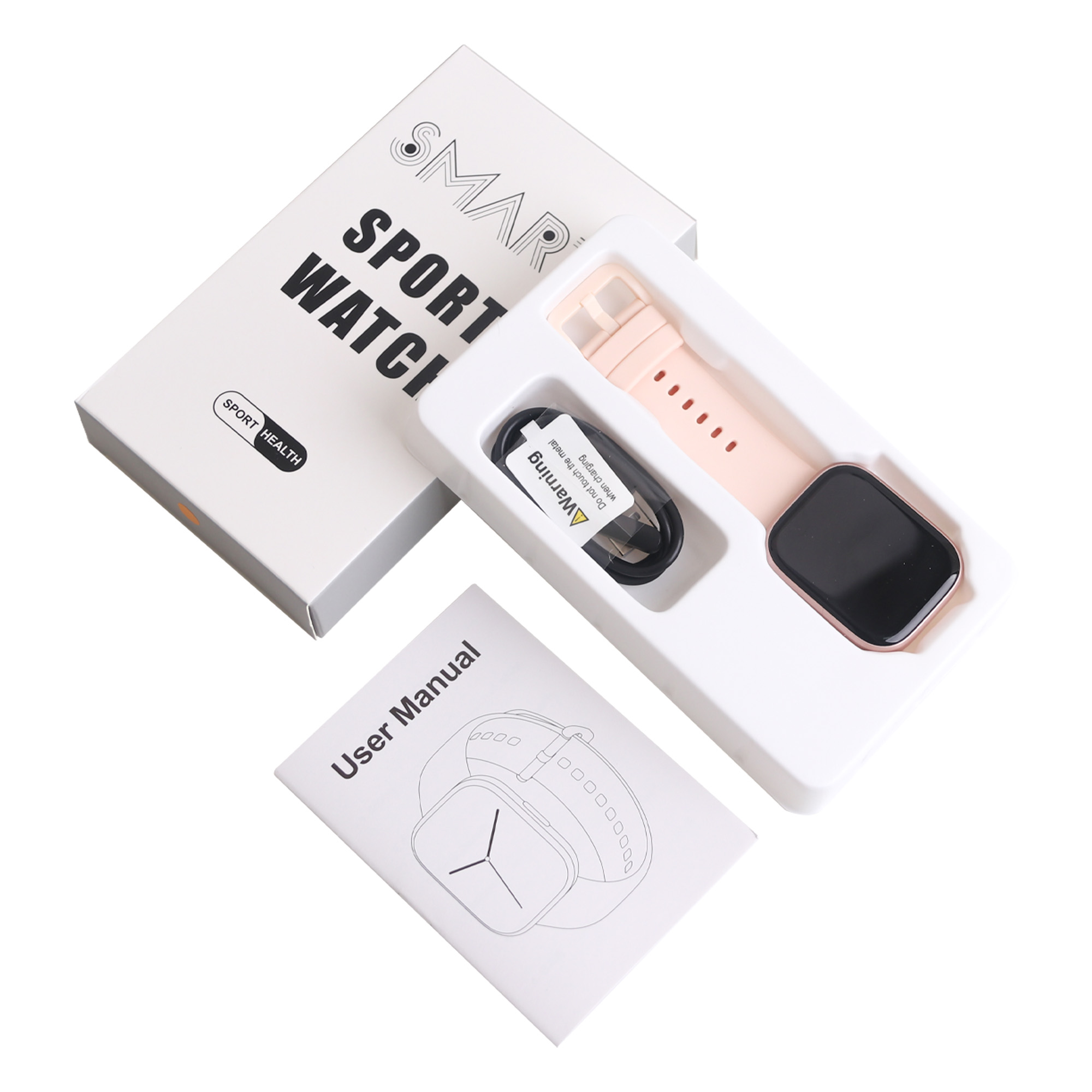 Use our 1.96″ Square Smart Watch to track your exercise and health in real time. The watch is equipped with a 1.96 Inch HD TFT big screen, screen resolution: 240*282. The watch material is mainly composed of plastic and silicone strap. The watch functions mainly include BT call, 100+ Multi-Sport Modes, Sport real time HR, very low/high Heartrate Alert, Red light SpO2, 100+ / DIY watch face, Voice assistant and so on. You can download the Gloryfit app from the Apple store or Google store, connect via Bluetooth and sync the data to your iPhone or Android smartphone for easy management. We will use screen print, UV print and engraving to customize your brand logo.
