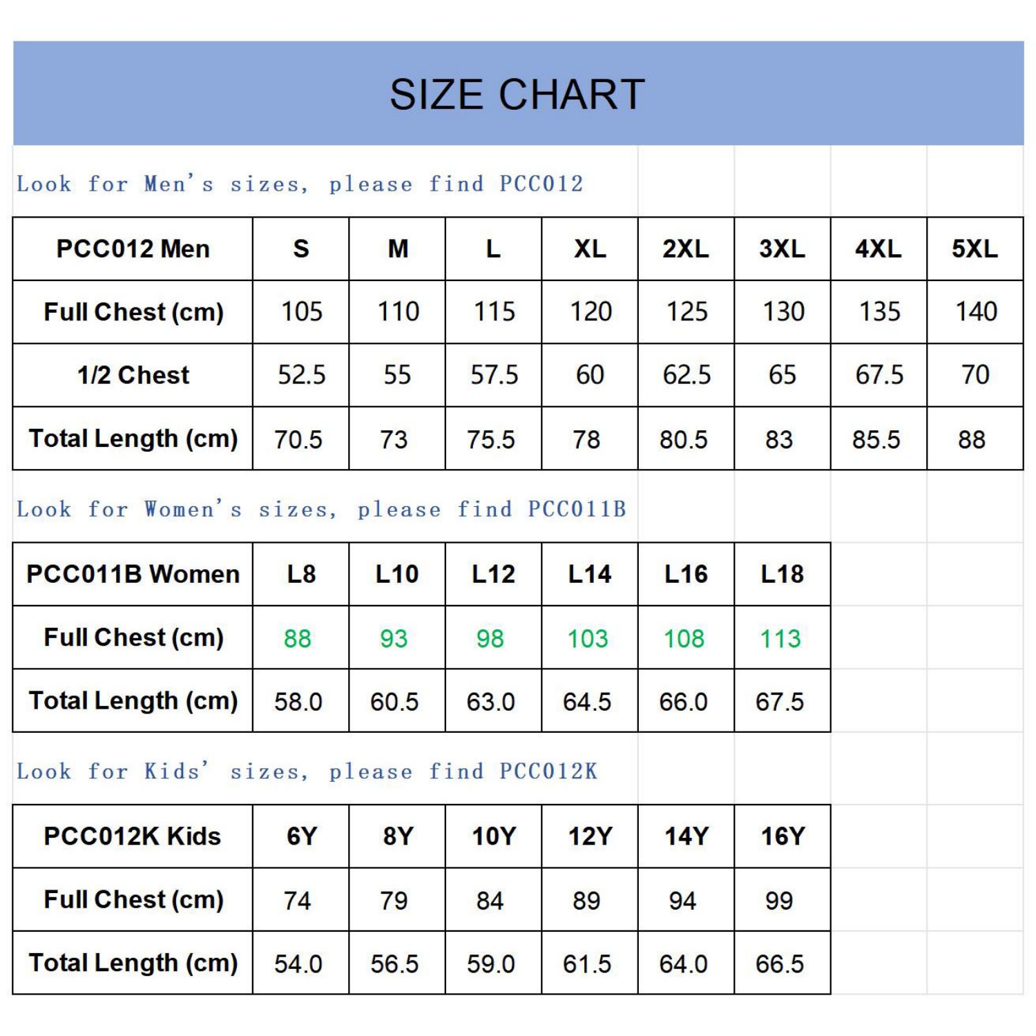 1.Prices are based on our standard size and cutting, Men’s sizes range from S to 5XL, Ladies’ sizes range from size 8 to size 18, Kids’ sizes range from size 6 to size 16. If you prefer to produce with your own size specification, we will re-quote the price accordingly.