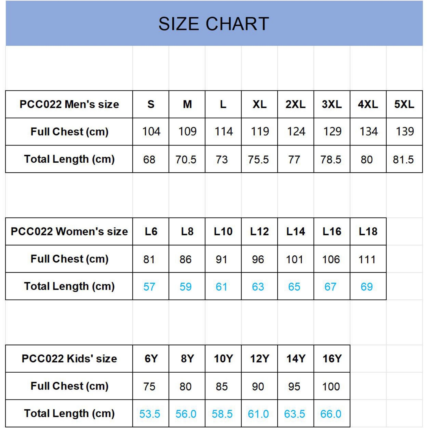 1.Prices are based on our standard size and cutting, generally Men’s sizes range from S to 5XL, Ladies’ sizes range from size 8 to size 18, Kids’ sizes range from size 6 to size 16. If you prefer to produce with your own size specification, we will re-quote the price accordingly.