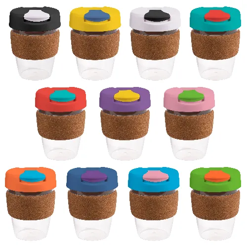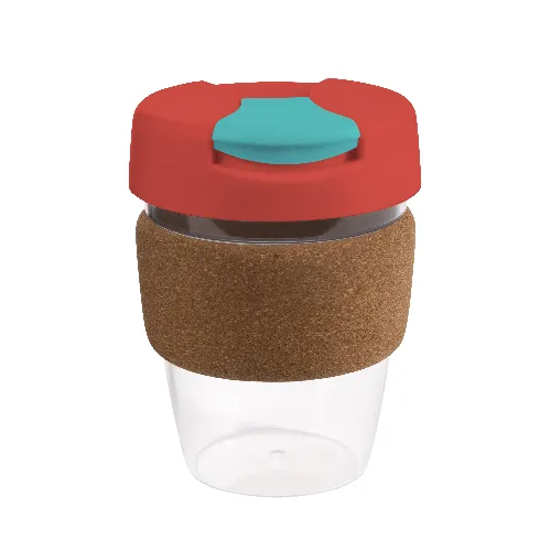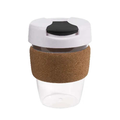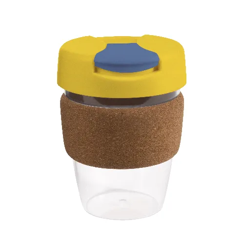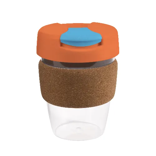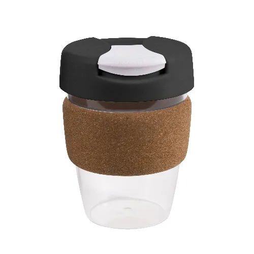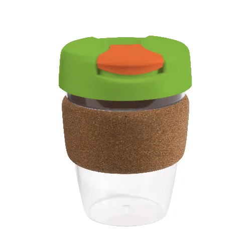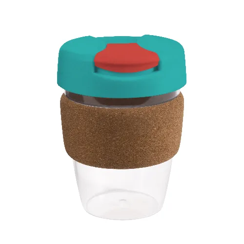Be the first to review “coffee cup / Mug 12oz/340ml Clear Plastic Karma Kup Cork Band Plastic Flip Lid Reusable Eco Friendly”