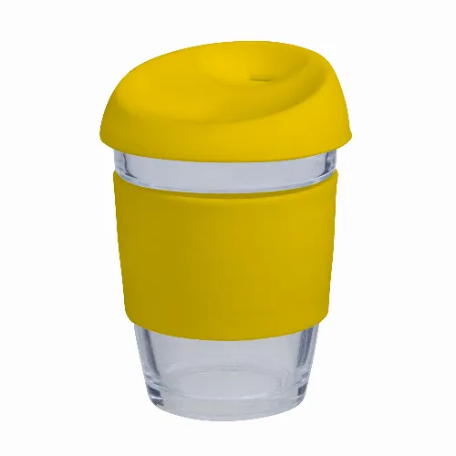 This glass reusable cup is made from high-quality non-porous glass. A very sturdy and stylish solution to enjoying your everyday cuppa. Available in 12oz/340ml with various coloured bands and lids mix and match options. Packed in a brown box with window.