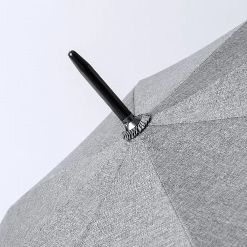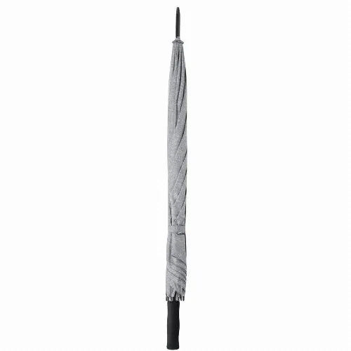 Made of durable 150D polyester material and in an elegant marbled grey tone. Automatic opening and fibreglass ribs, with windproof system and velcro closure. With ergonomic handle in soft EVA and presented in a recycled bag.
