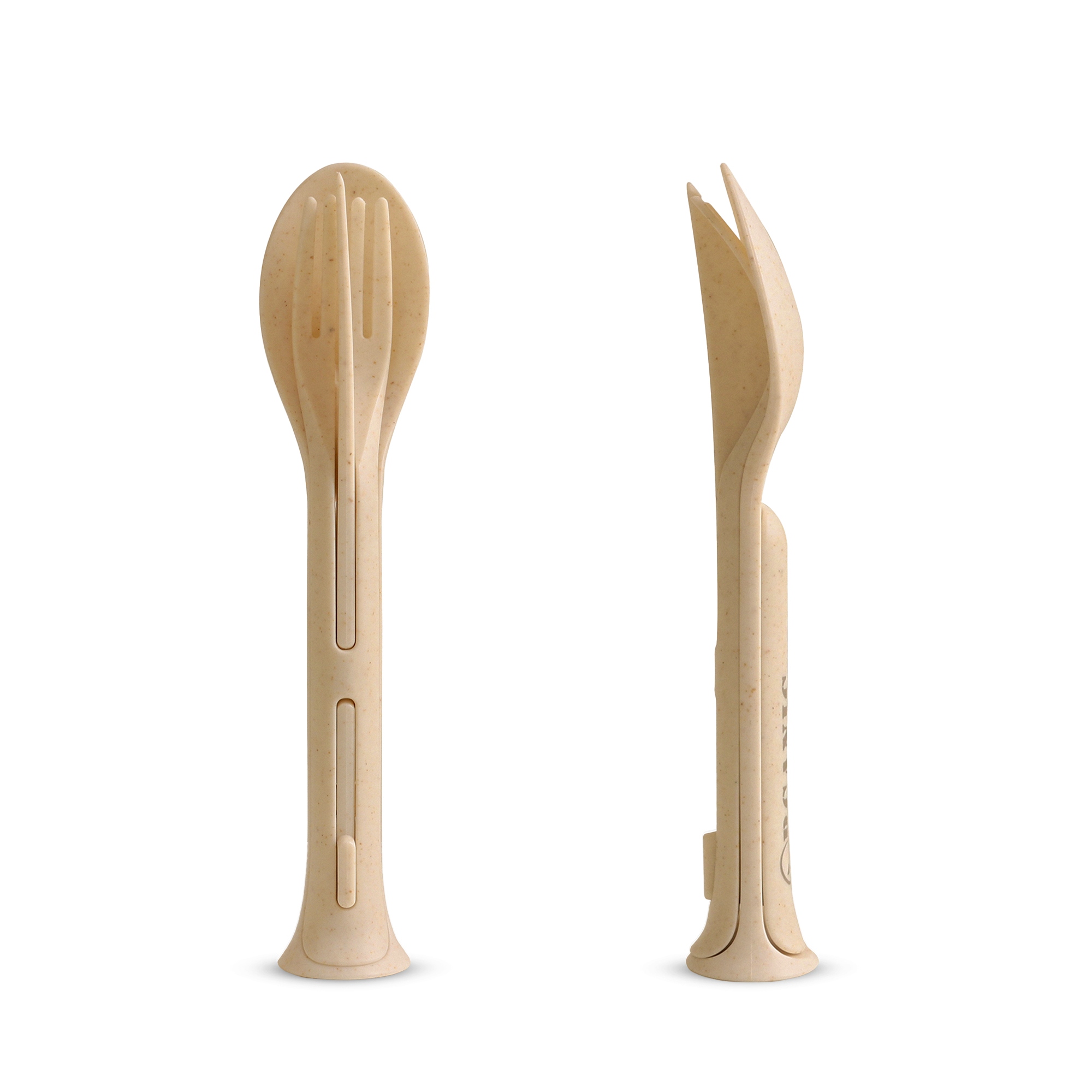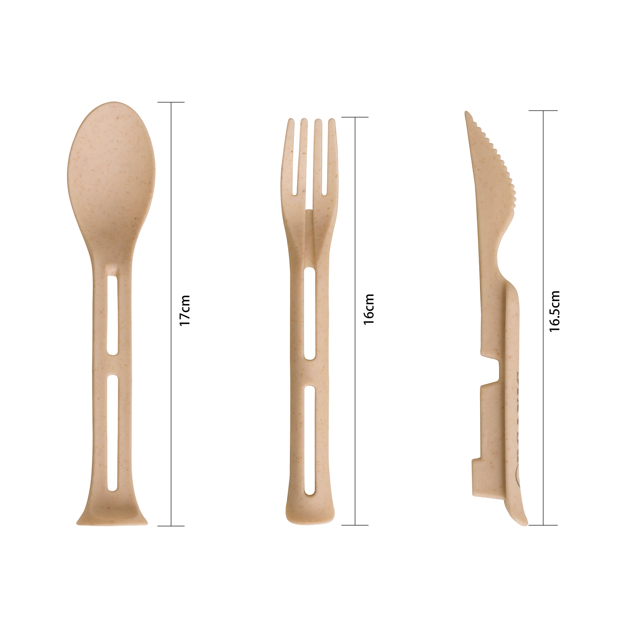 Promote your brand with our new 3-in-1 Portable Utensils Set! This reusable cutlery set is made of 15% wheat straw and 85% pp. Includes a knife, fork, and spoon. When not used, all pieces are cleverly shaped to snap together and take up no extra space for easy carrying on the go. Laser engraving your logo on the handle is available. Our 3-in-1 cutlery set is great way to transport utensils on your next camping trip. Get your logo printed on the set, which can enhance its promotional effect. It is undoubtedly a practical, eco friendly gift.