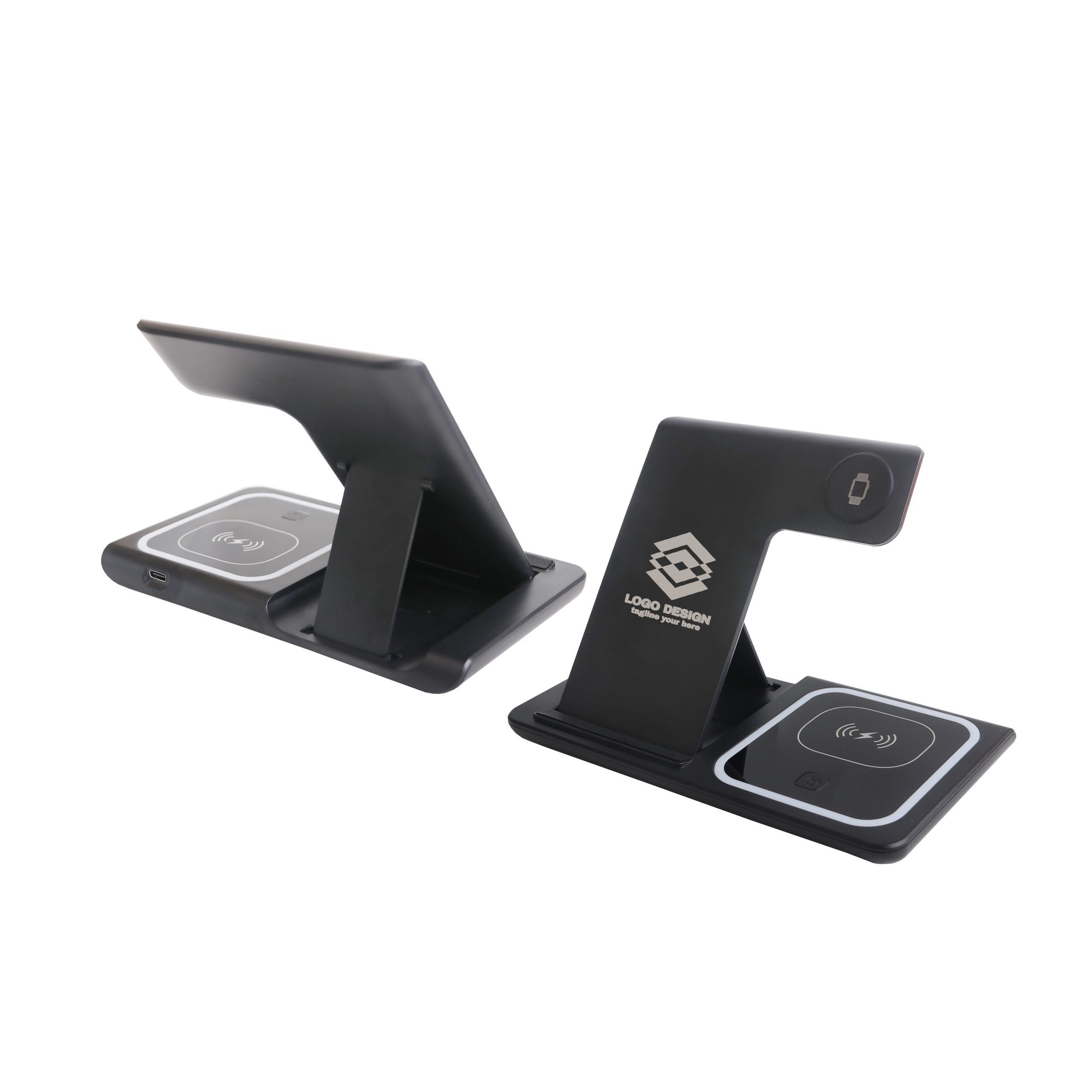Get your brand seen on our new 3 in 1 Portable Wireless Charger! Made of ABS material, it has a premium feel and is portable. With its foldable body, it can be flat-packed to save space when not in use. This versatile charger can simultaneously charge Qi-compatible smartphones, earphones, and smartwatches, and can also be a useful phone stand. Personalize it with your logo through laser engraving to promote your brand effectively. Say goodbye to the hassle of messy chargers and cables with this multi-functional wireless charger. Don’t miss out on the chance to enhance your brand presence!