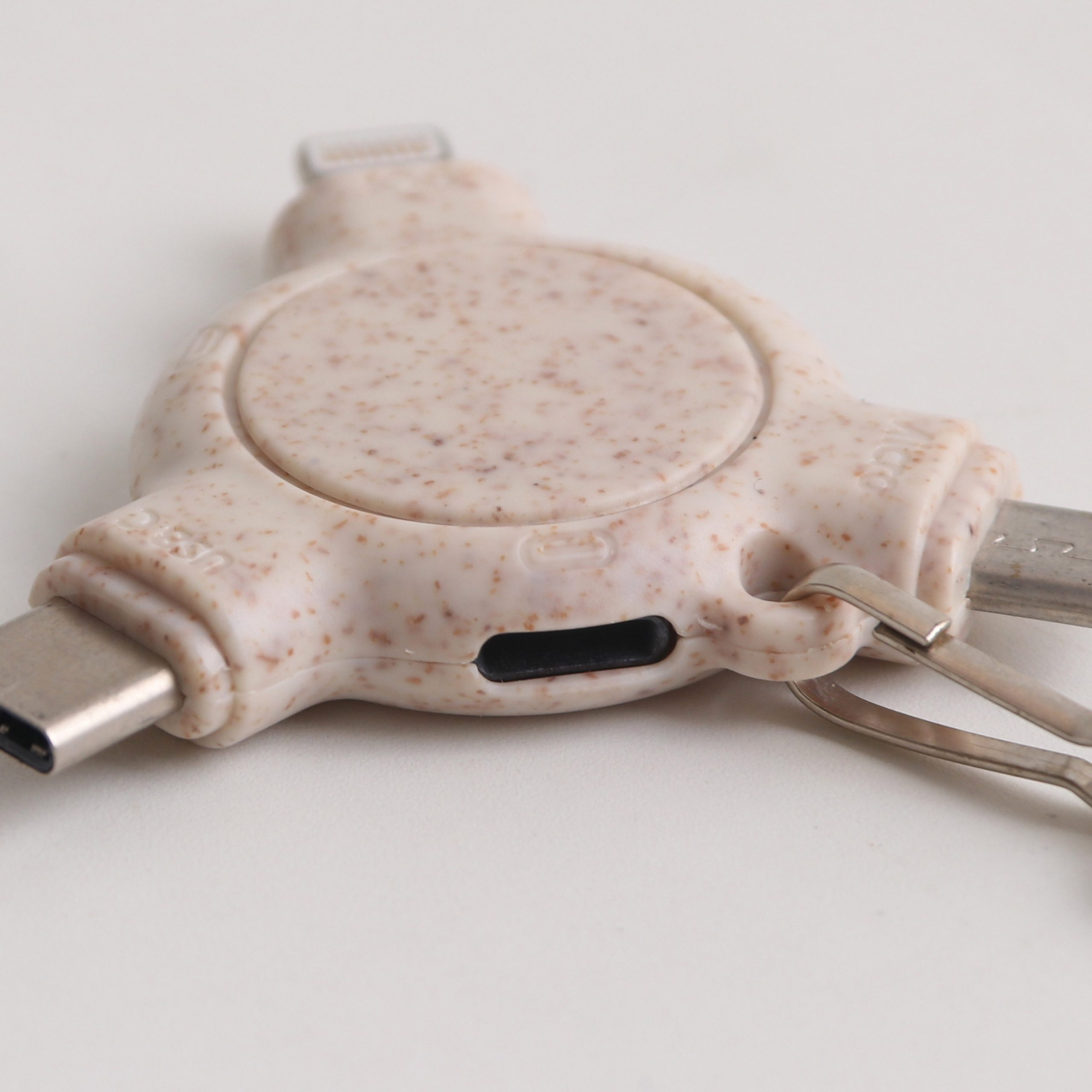 Protect your smartphone or tablets from any unwanted data transfer, with our new 3-In-1 Wheat Straw Data Blocker with Keyring. Made of wheat straw material, which is eco-friendly and degradable. Complete with screen print to highlight your brand. Customized logo on disc can enhance the effect of brand promotions. Our data blockers are suitable for using public charging stations or computers. Compatible with Lightning, Micro USB, and Type-C devices. Simply plug the cable into a powered USB port and then into your device or smartphone. Blocks data transfer when charging. Also equipped with a keyring clip, allowing it to be buckled onto a bag, . Both Apple and Android users will benefit from this promotional charging cable kit!