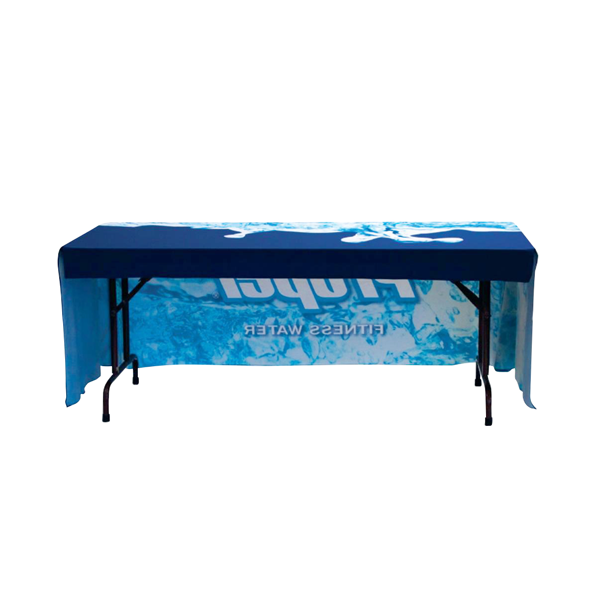 Create a custom tradeshow display with our new Stretch Table Covers with Zipper. Made of 240g Elastic Polyester, that will give your booth a professional appearance. The tablecloth can be sublimation printed with all colours and different patterns. Rear zip for easy storage of your belongings while keeping them private and secure. Rubber foot sets on the inside are attached to the table legs to keep the tension tight. It's ideal for promotional events and tradeshows to add an extra visual element to your display.