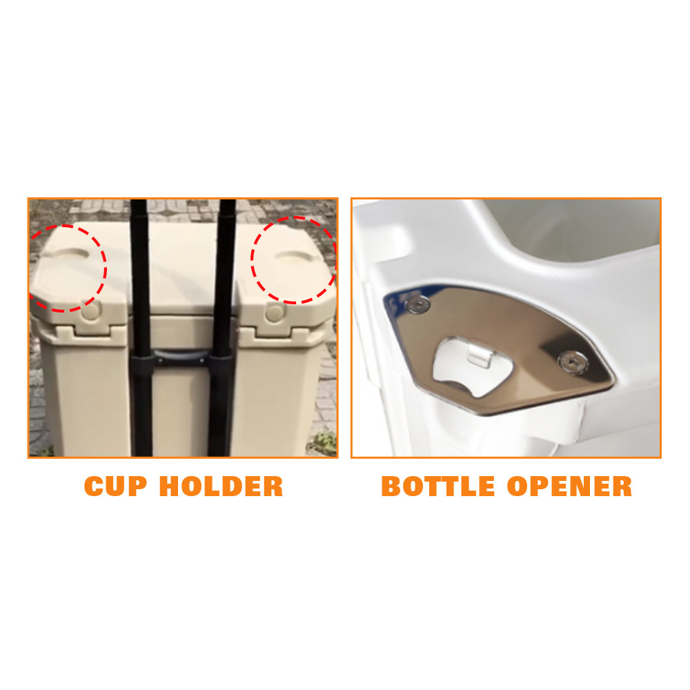 - Comes with attached bottle opener, and cup holders in the lid, for convenient use on the go