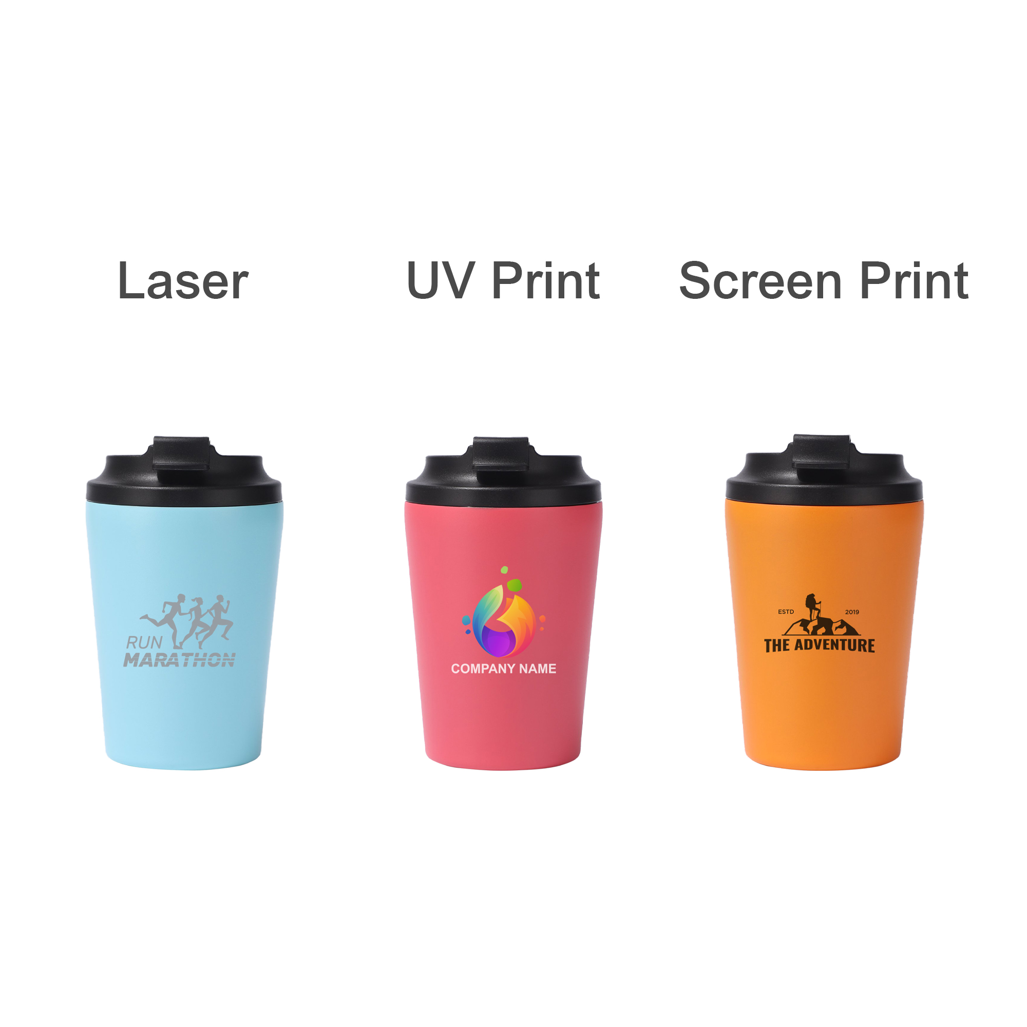 Enjoy your favorite drinks with our sleek 350ML stainless steel coffee mug that keeps both hot and cold drinks at the perfect temperature. Made from 304 stainless steel, this reusable mug is built to last while providing you with a sustainable drinking solution. Features a flip closure lid that folds all the way back for easy drinking. Available in a range of great colours, and can customise your logo with screen print, engraving or UV printing to showcase your brand or personal style. Perfect for daily commutes, office use, or outdoor adventures, this versatile mug makes an excellent promotional gift.
