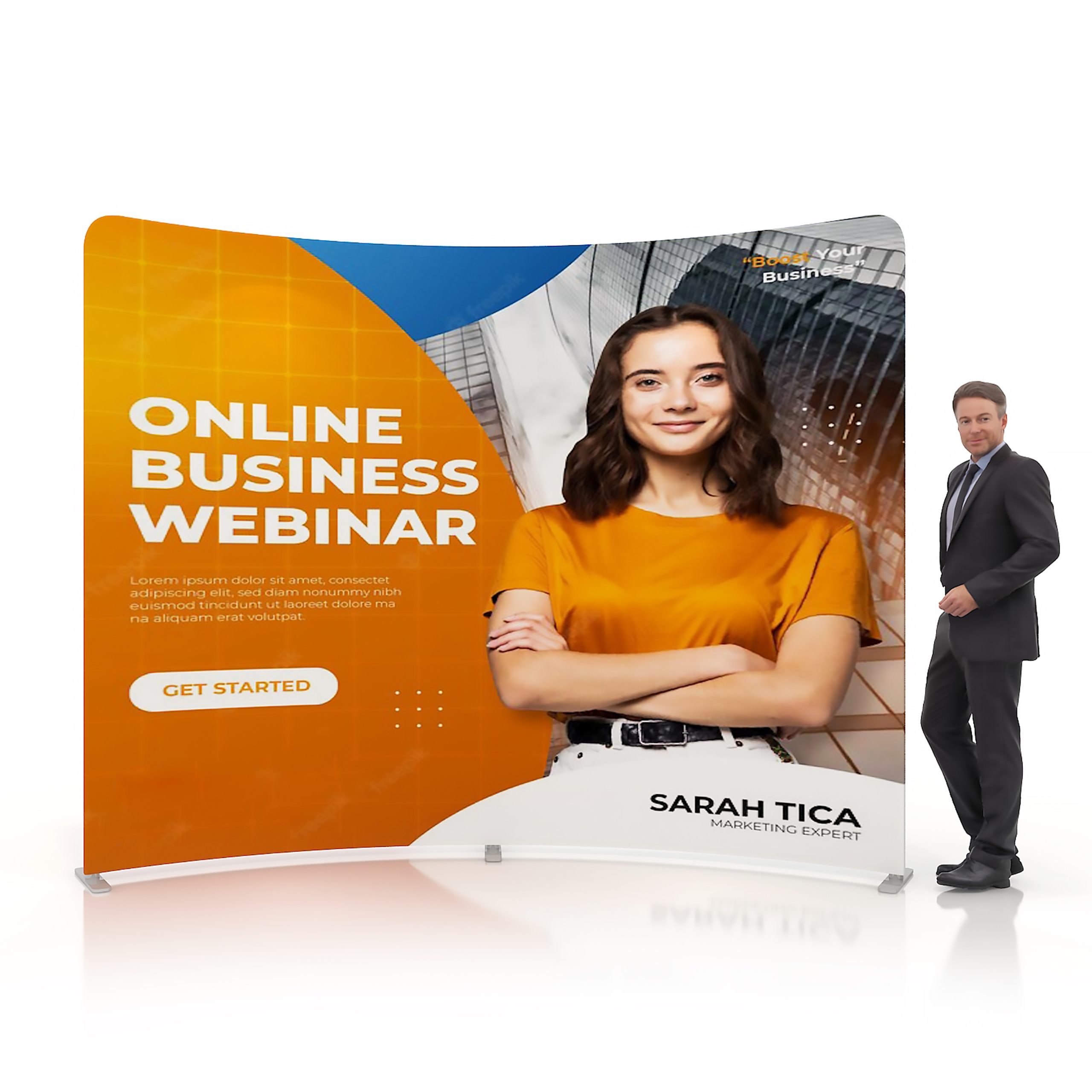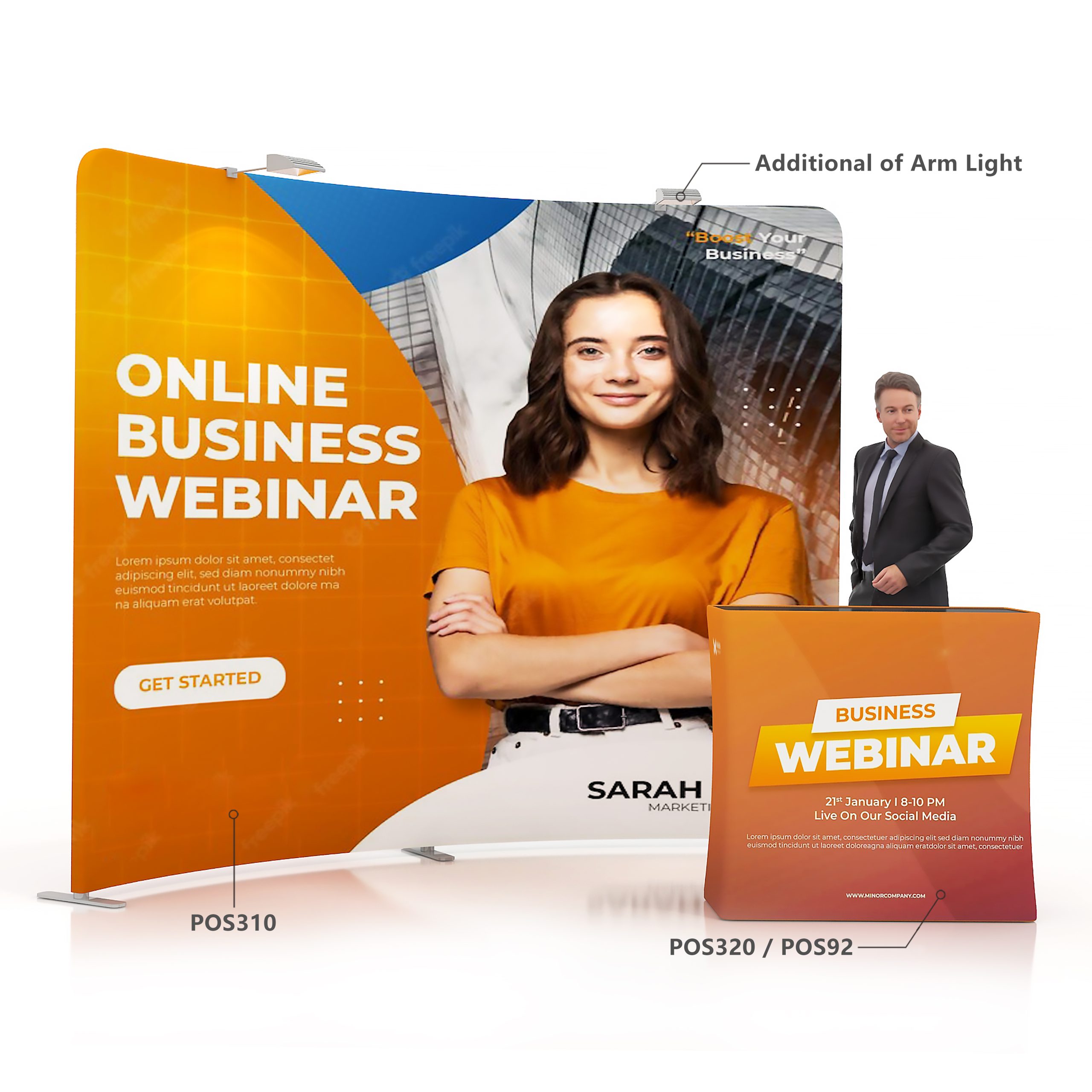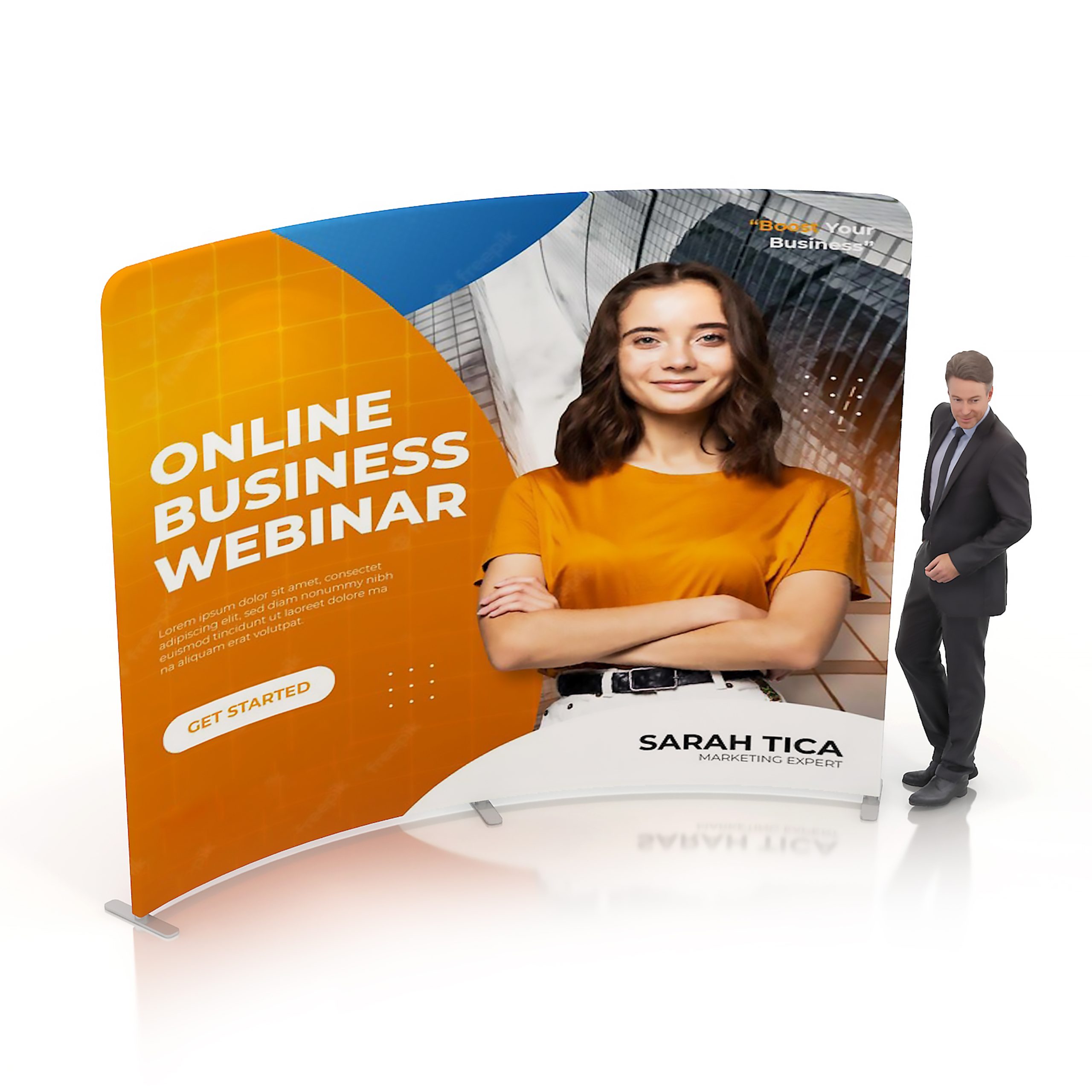 Get your branding seen at your next event, with our new display wall. The lightweight and strong aluminum frames are powerfully-built to sustain the fabric’s stretch over long periods of time. The aluminum tube has a snap-lock function that can be easily assembled without tools. Made of Eco-friendly materials and reusable structure. Supporting customization via full surface sublimation printing. Can also be printed on both sides. Use our printed fabric wall banner as a background for stages, events, photobooths, press conferences, award ceremonies and more.