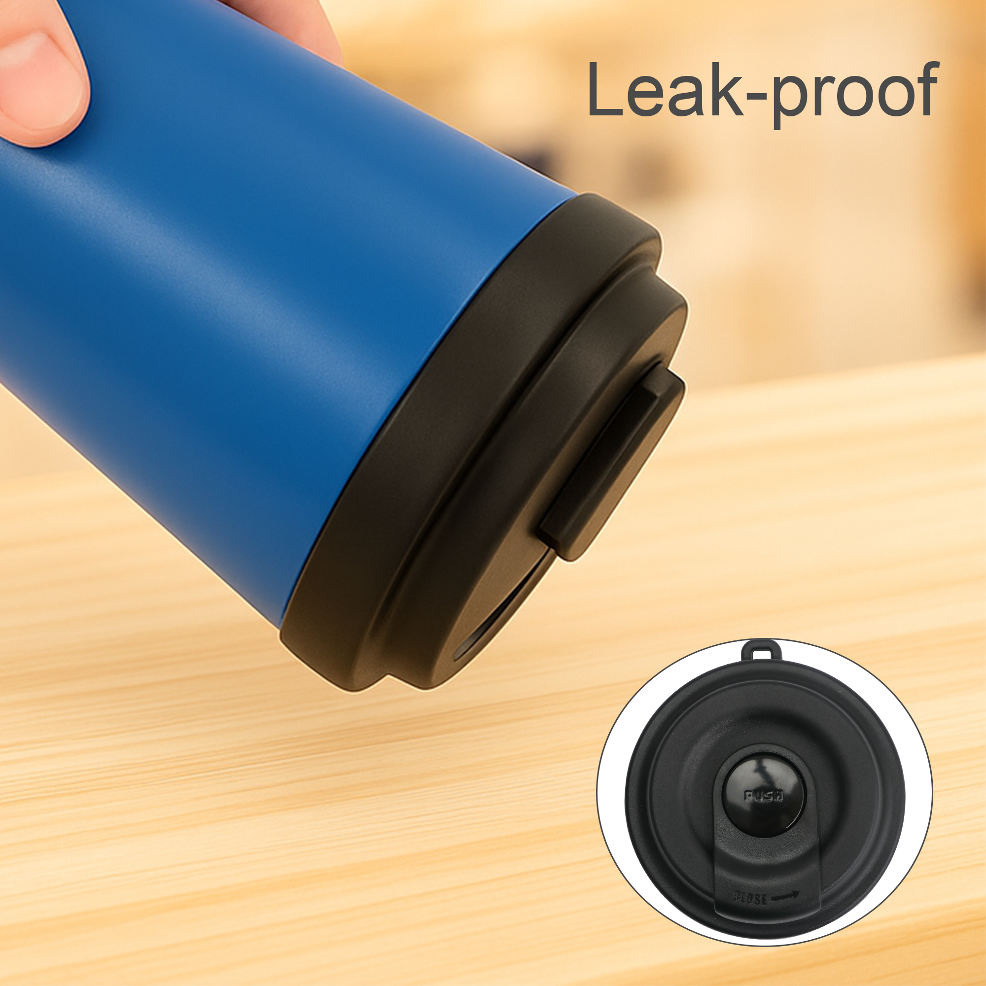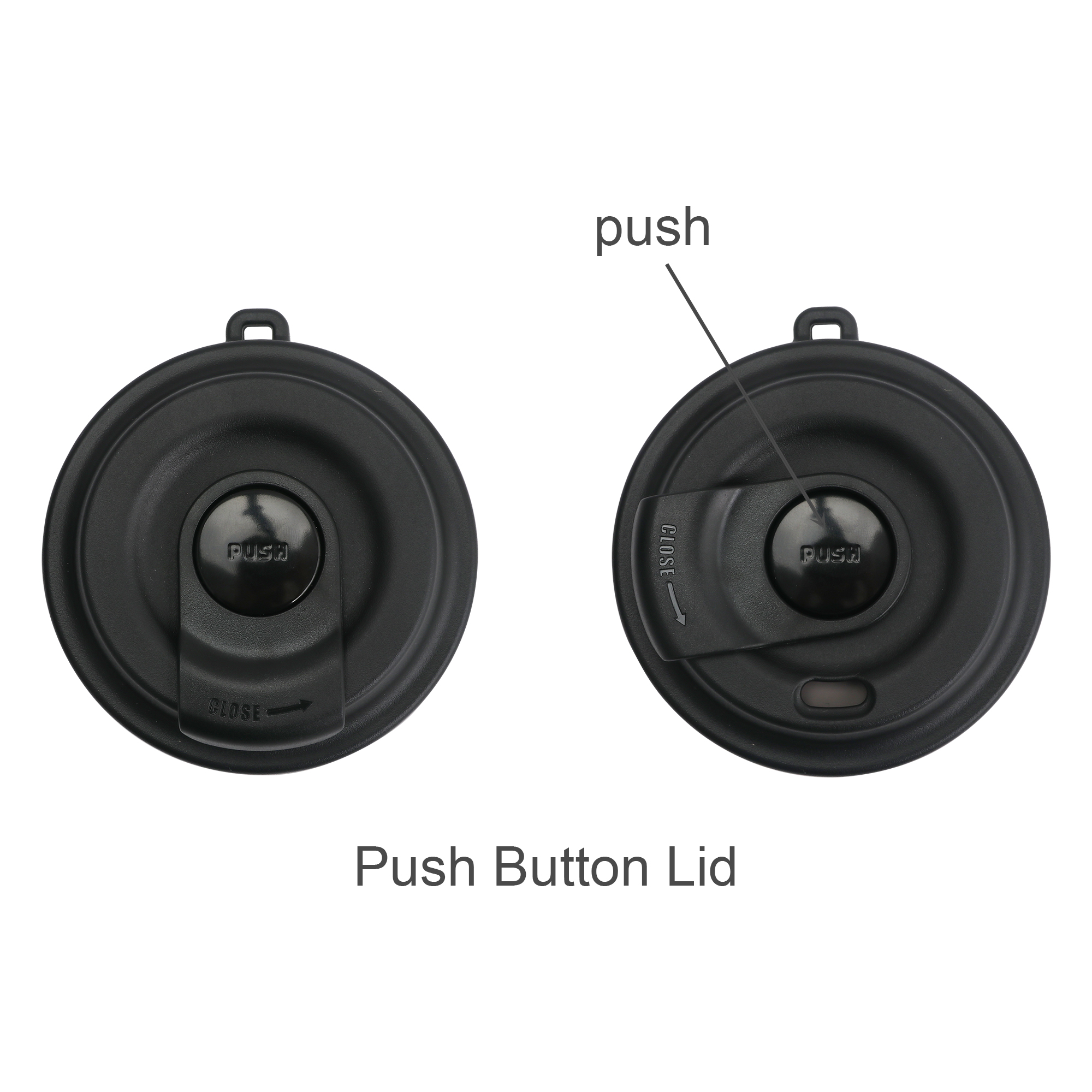 - Convenient push‑button lid with leak‑proof sealing to maintain drink temperatures