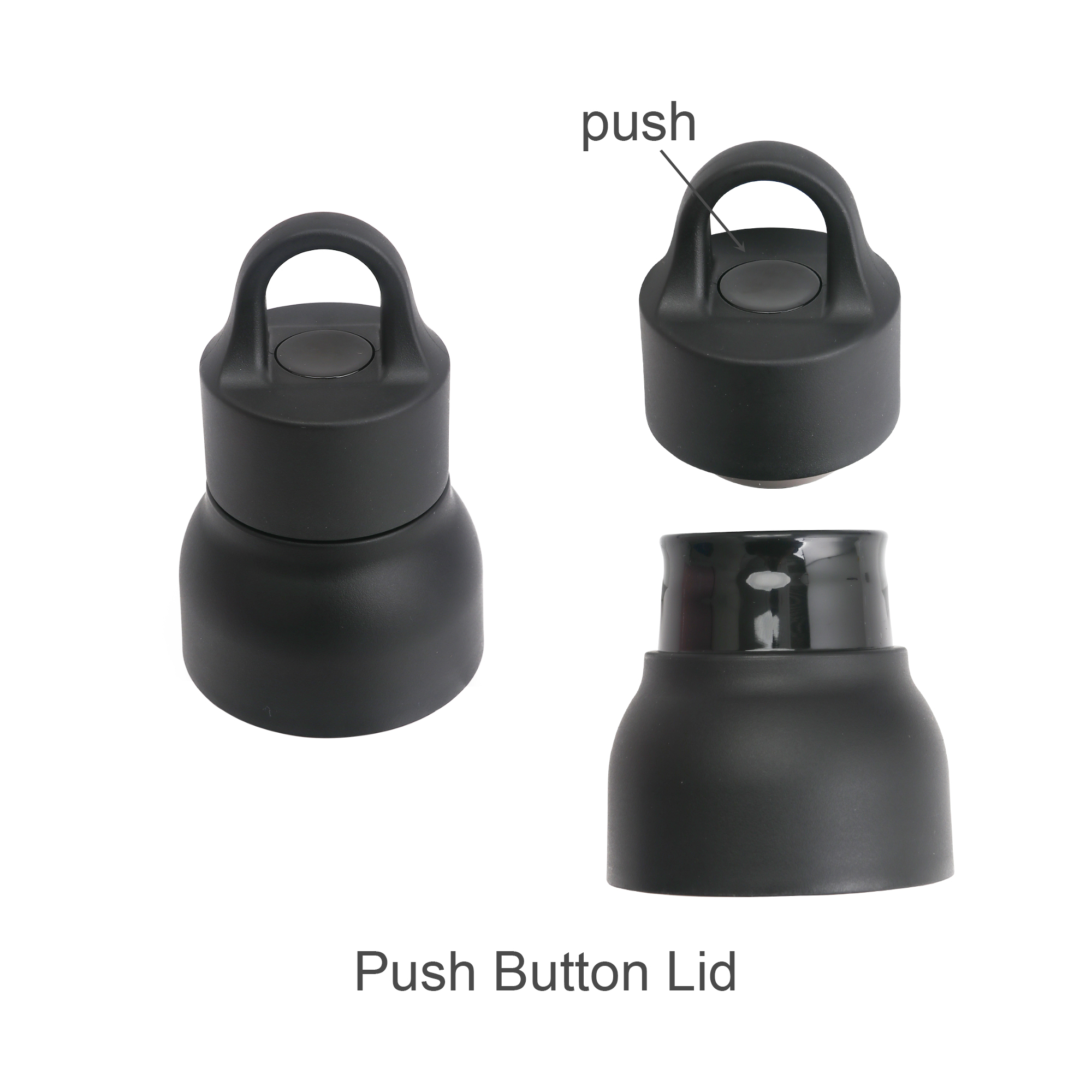 - one-hand push-button lid with secure, leak-proof silicone seal