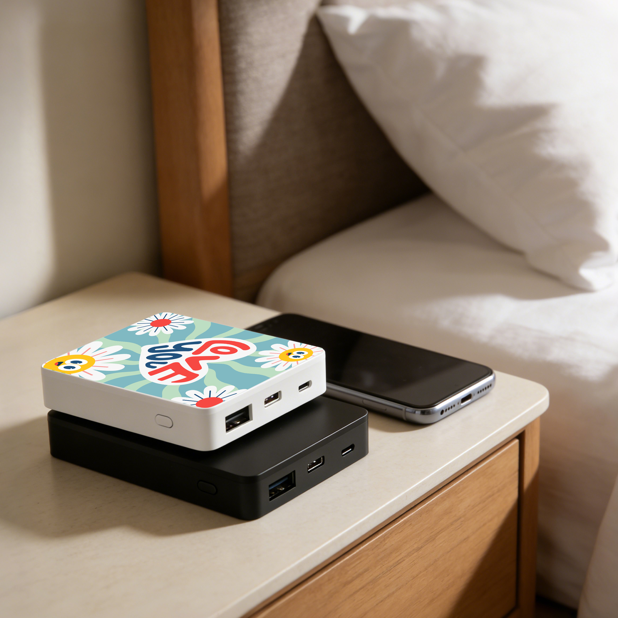Charge your phone effortlessly with our 5000mAh Aluminum Magnetic Power Bank! Crafted from high-quality PC plastic and aluminum, it comes in gunmetal gray and gold, featuring full screen printing, engraving, and UV printing to showcase your unique design. Lightweight and durable, its aluminum housing ensures long-lasting use, while the magnetic design eliminates extra hassle. Equipped with a charging cord, it speeds up charging whenever you need it, making it perfect for any occasion. Your ideal companion for on-the-go power!