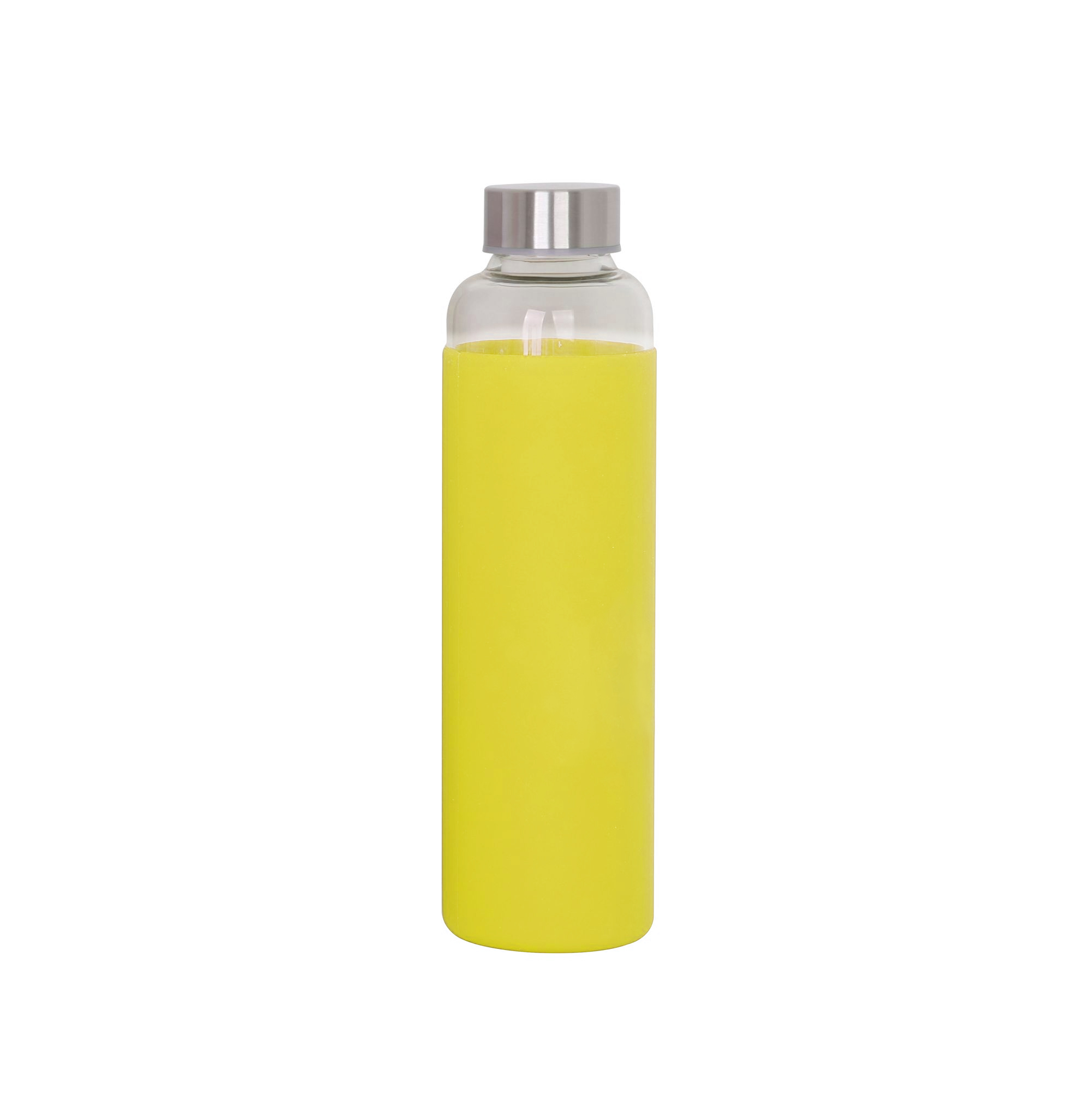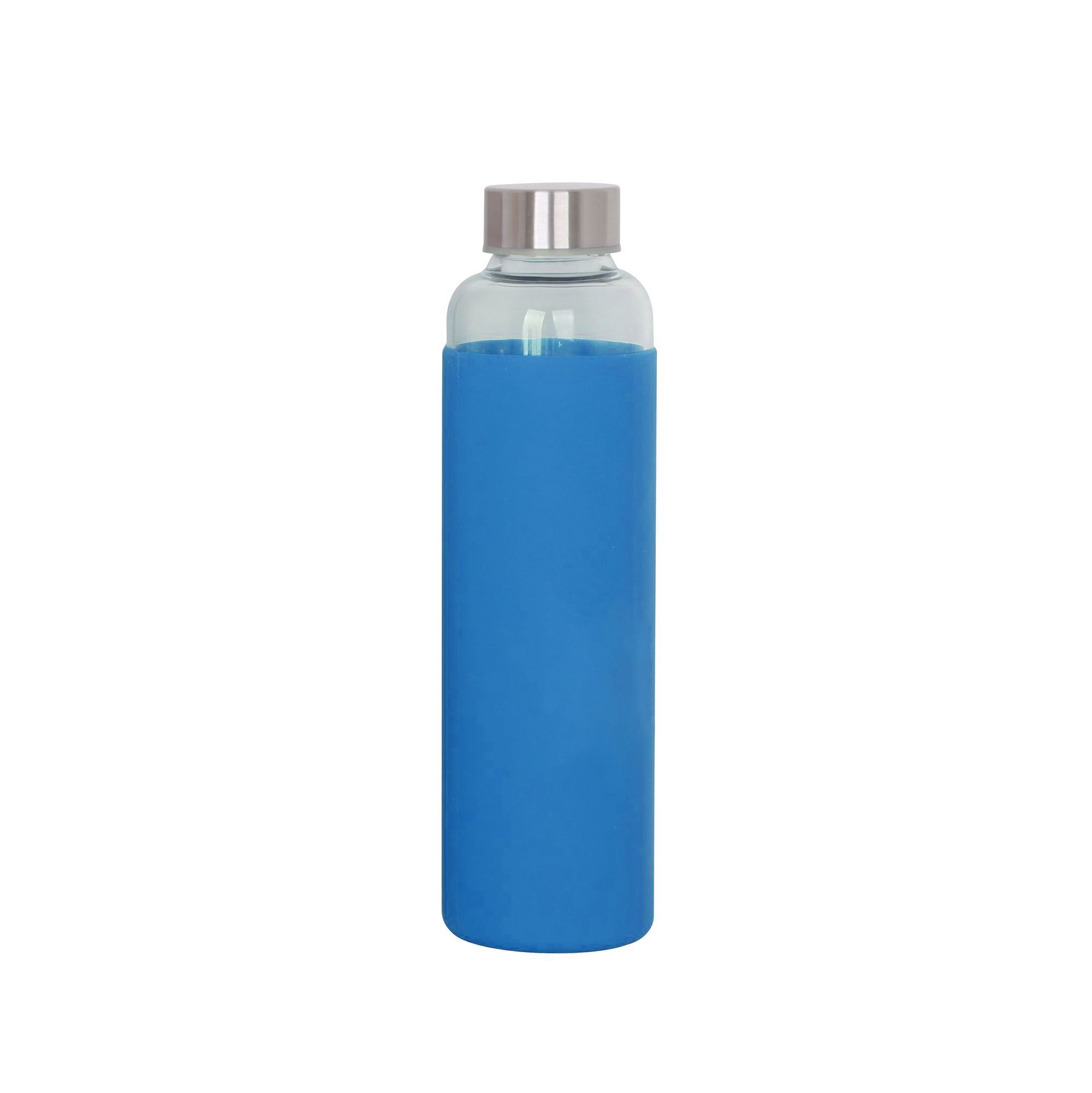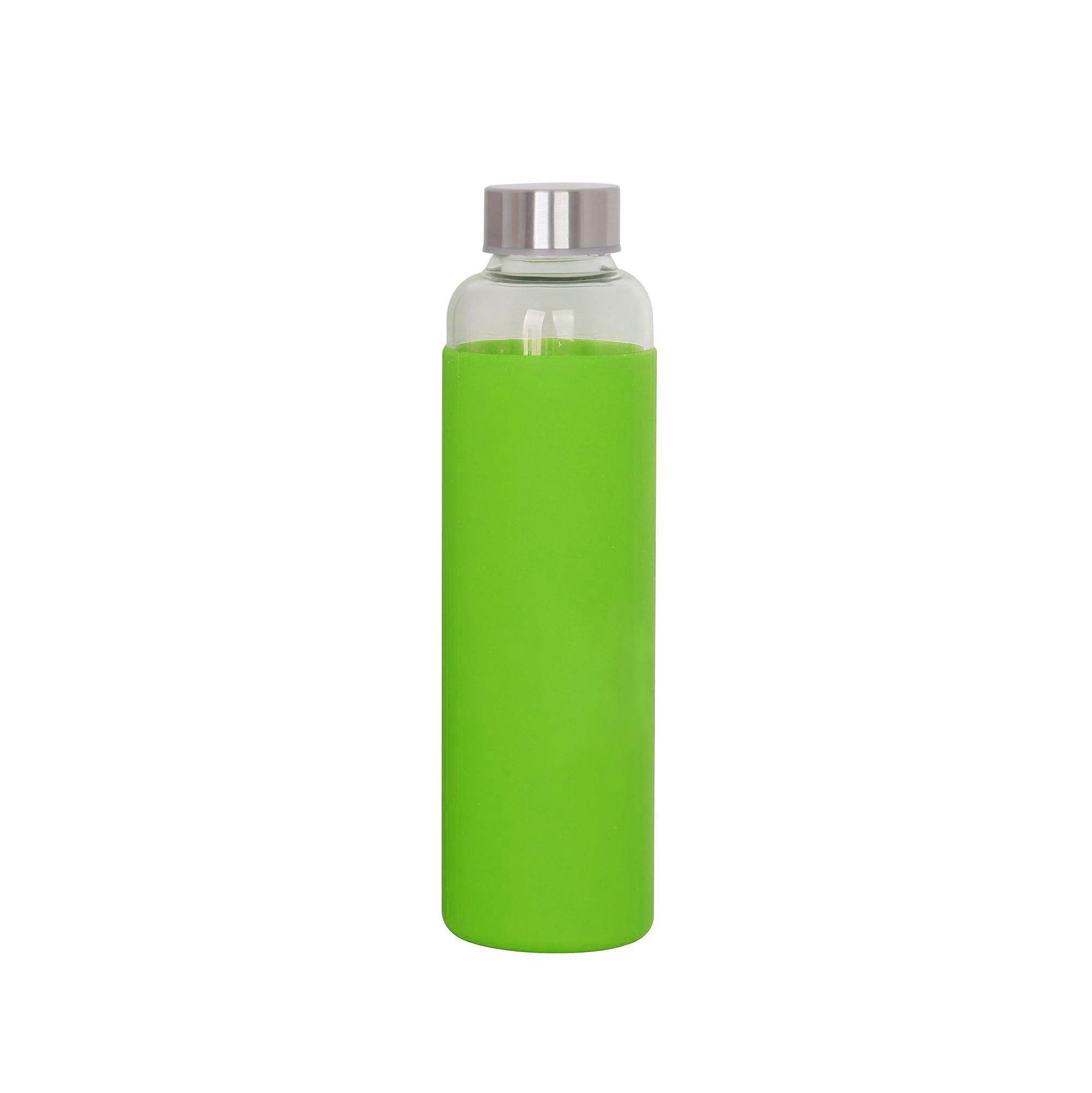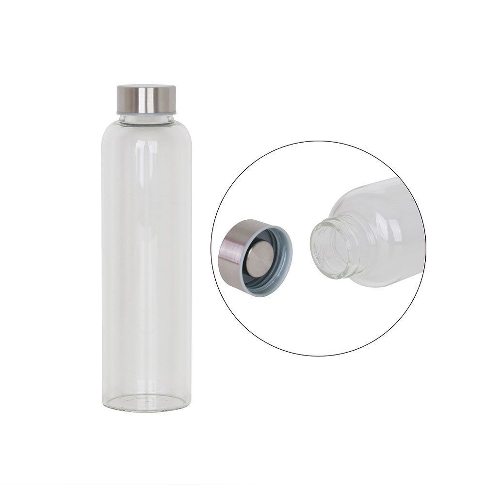The borosilicate glass drink bottle features a secure screw on stainless steel lid, and it is light enough to take anywhere. It is great for hiking, camping or any outdoor activities. Borosilicate is a lightweight glass that is exceptionally strong and shatter resistant. Glass drink bottles are a great environmentally friendly choice. This product is not intended to be used with carbonated or hot liquids, and handwashing is recommended. You can choose to add a protective soft-touch silicone sleeve or a neoprene sleeve that can be printed with any logo.
