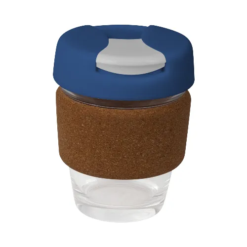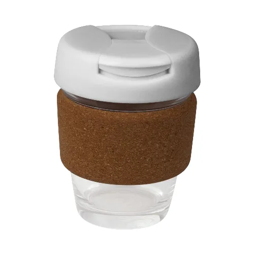 This glass reusable coffee cup / mug is made from high-quality non-porous glass. A very sturdy and stylish solution to enjoying your everyday cuppa. Available in 8oz with cork band and coloured mix and match lids. Packed in a brown box with window.