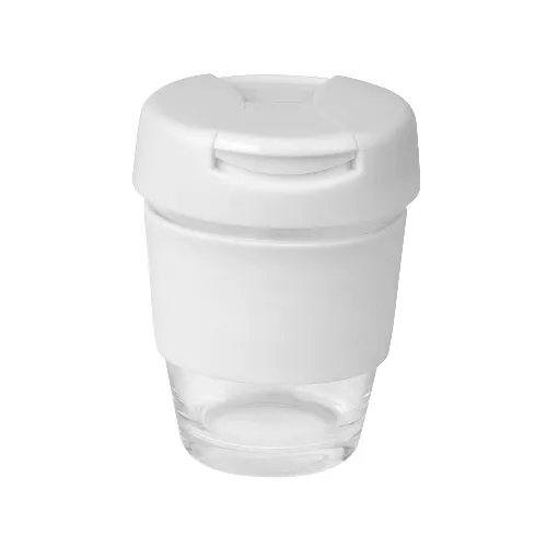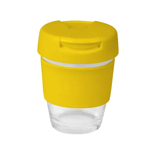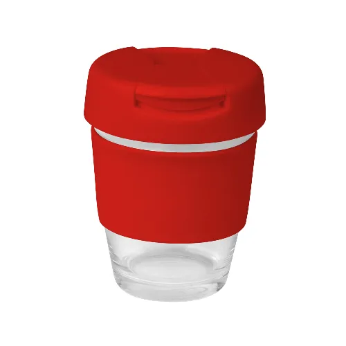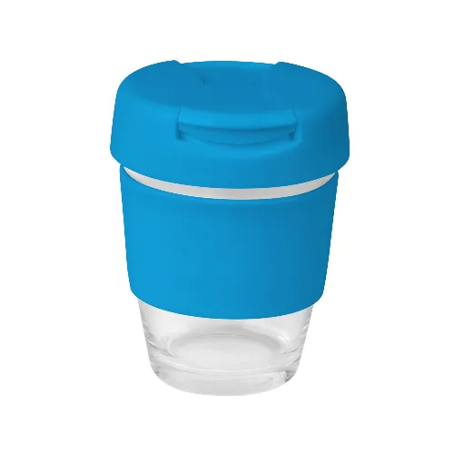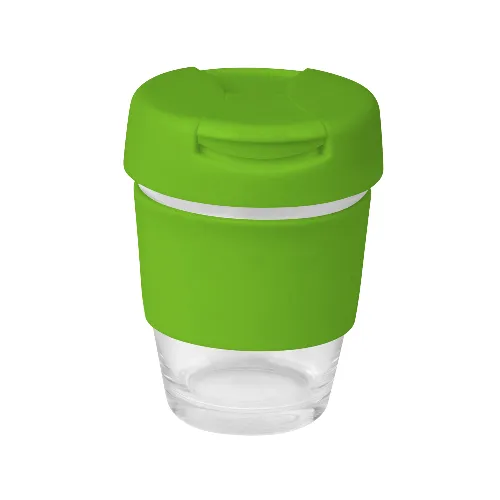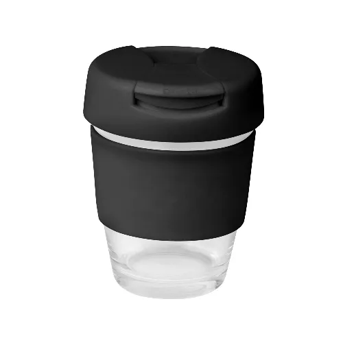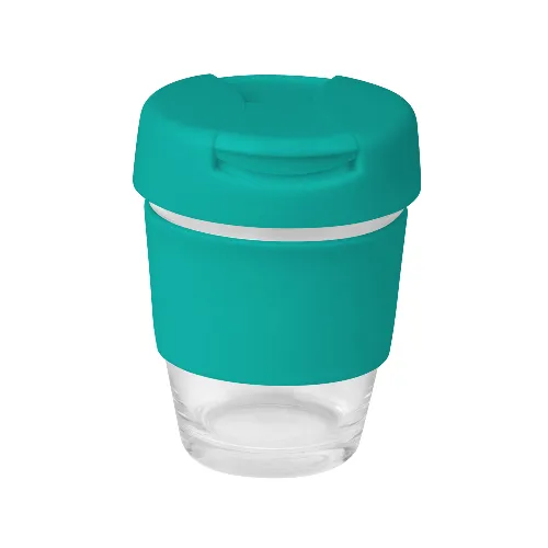 This glass reusable coffee cup is made from high-quality non-porous glass. A very sturdy and stylish solution to enjoying your everyday cuppa or coffee. Available in 8oz/235ml with various coloured bands and lids mix and match options. Packed in a brown box with window.