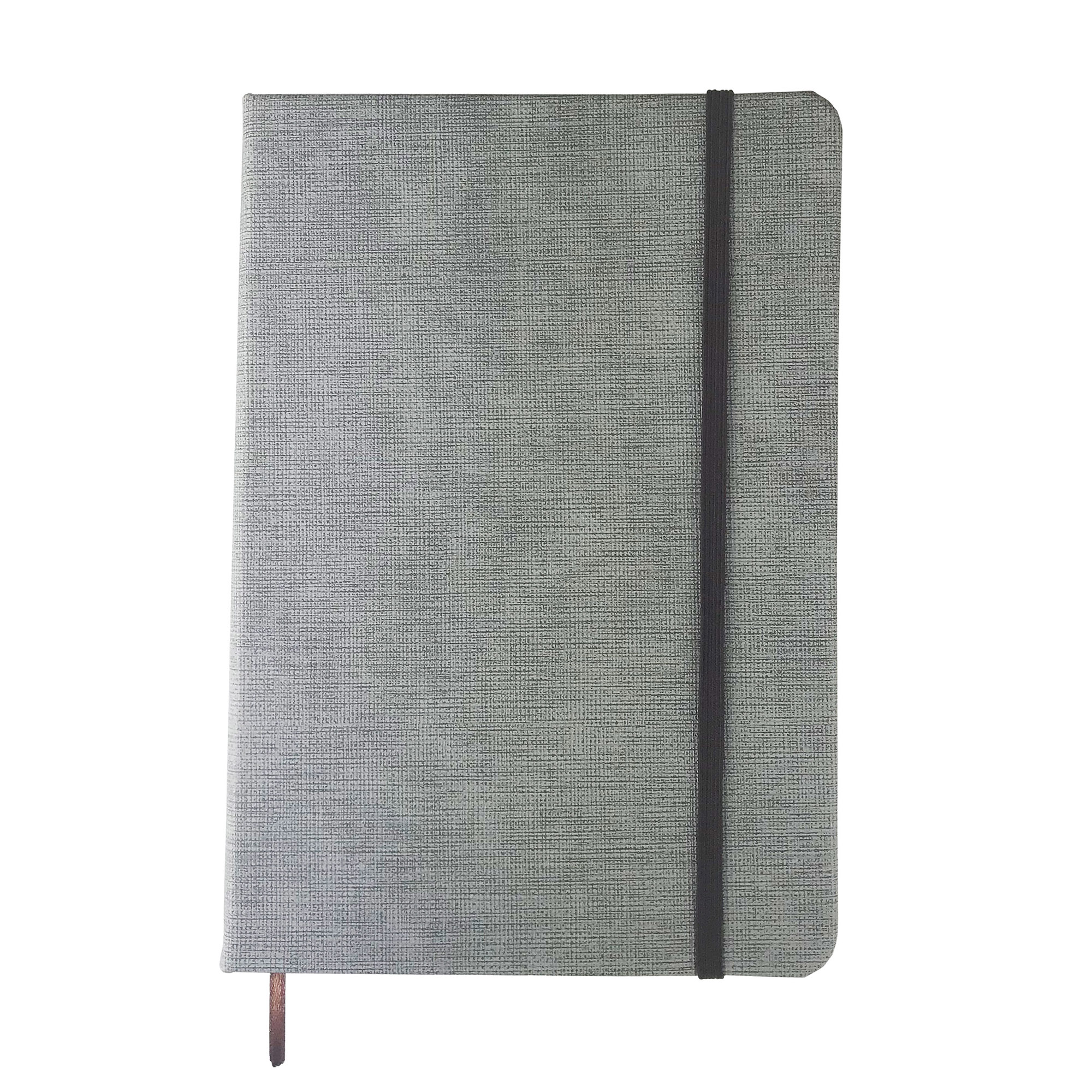 Stylish A5 size textured PU cover notebook brown elastic retaining closure holds a recyclable paper pen and matching ribbon page marker. 80 leaves 160 pages of 70gsm lined white paper. A great corporate notebook makes a brilliant gift for your favourite employee or student. NFC is available as an optional add-on for this product.