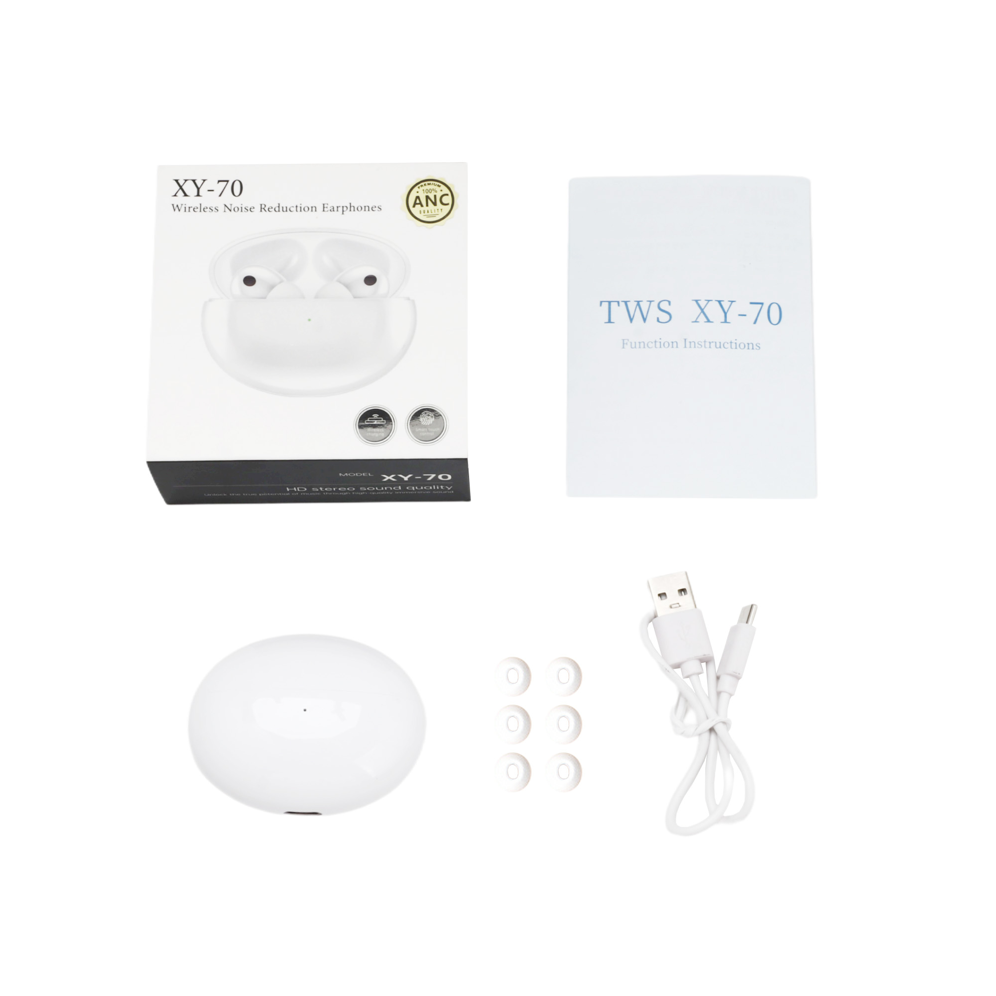 Introducing our Active Noise Cancelling Wireless Earbuds, they provide active noise Cancelling functionality, which can effectively isolate the external sounds. Designed for those who demand both quality and style. Crafted from durable ABS and PC materials, these earbuds offer about 8 hours of uninterrupted listening. With pad print or UV print to highlight your logo. Each set comes with a packaging box, user manual, and charging cable. Available in white or silver colour, these earbuds blend function with modern aesthetics. Elevate your audio experience today!
