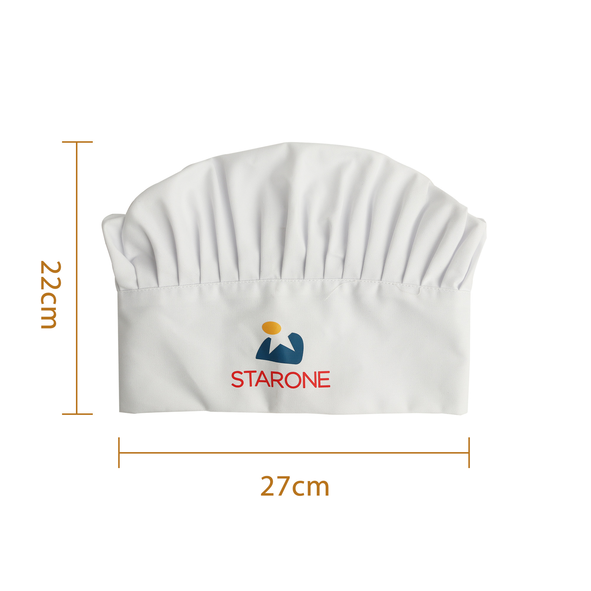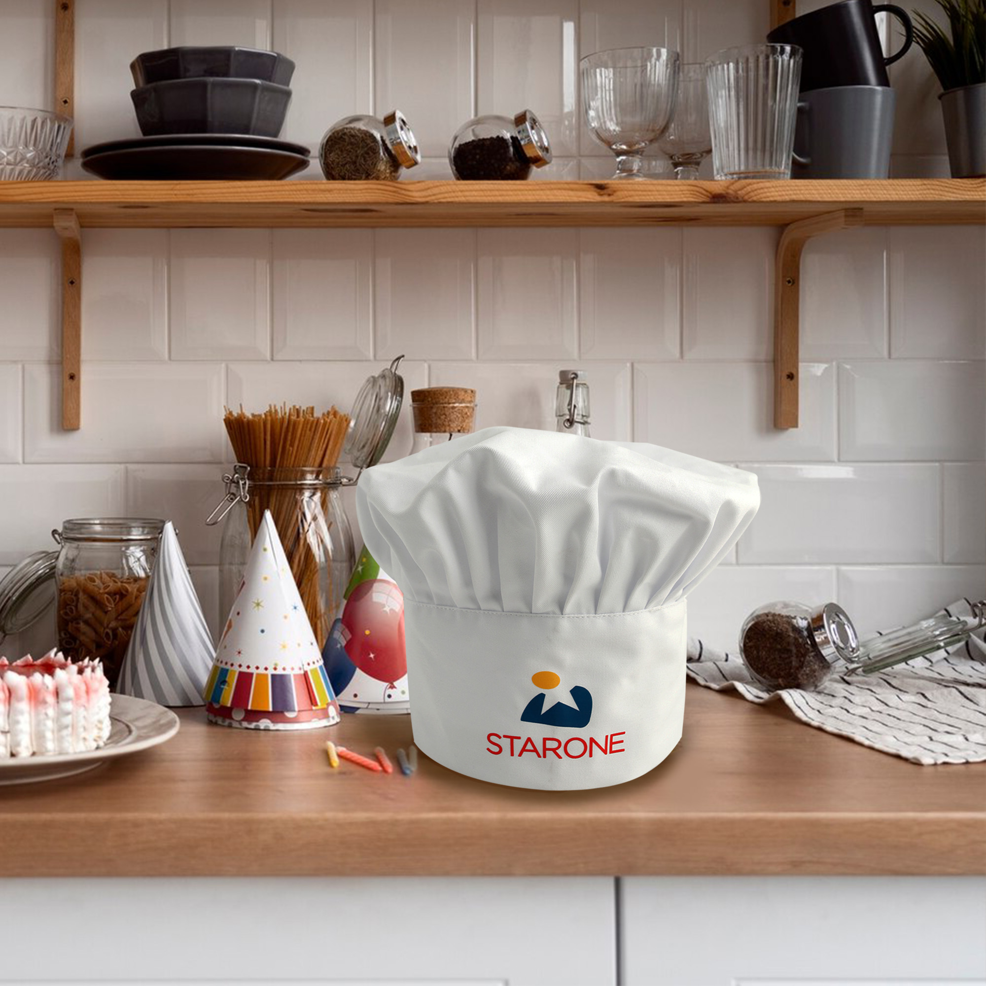 Cook in style with our Adult Chef Hat, made from premium polyester-cotton blend fabric. Breathable and durable, it ensures comfort during long hours in the kitchen. Complete with full colour heat transfer on the front, to showcase your logo or a fun design. The adjustable back strap ensures a perfect fit for all. Its wide brim blocks light and steam. Ideal for professional chefs, home cooks, and culinary students alike – elevate your kitchen experience with this distinctive headwear!