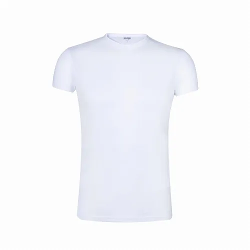 T-shirt for adult in 100% breathable polyester material of 140g/m2 with cotton texture.