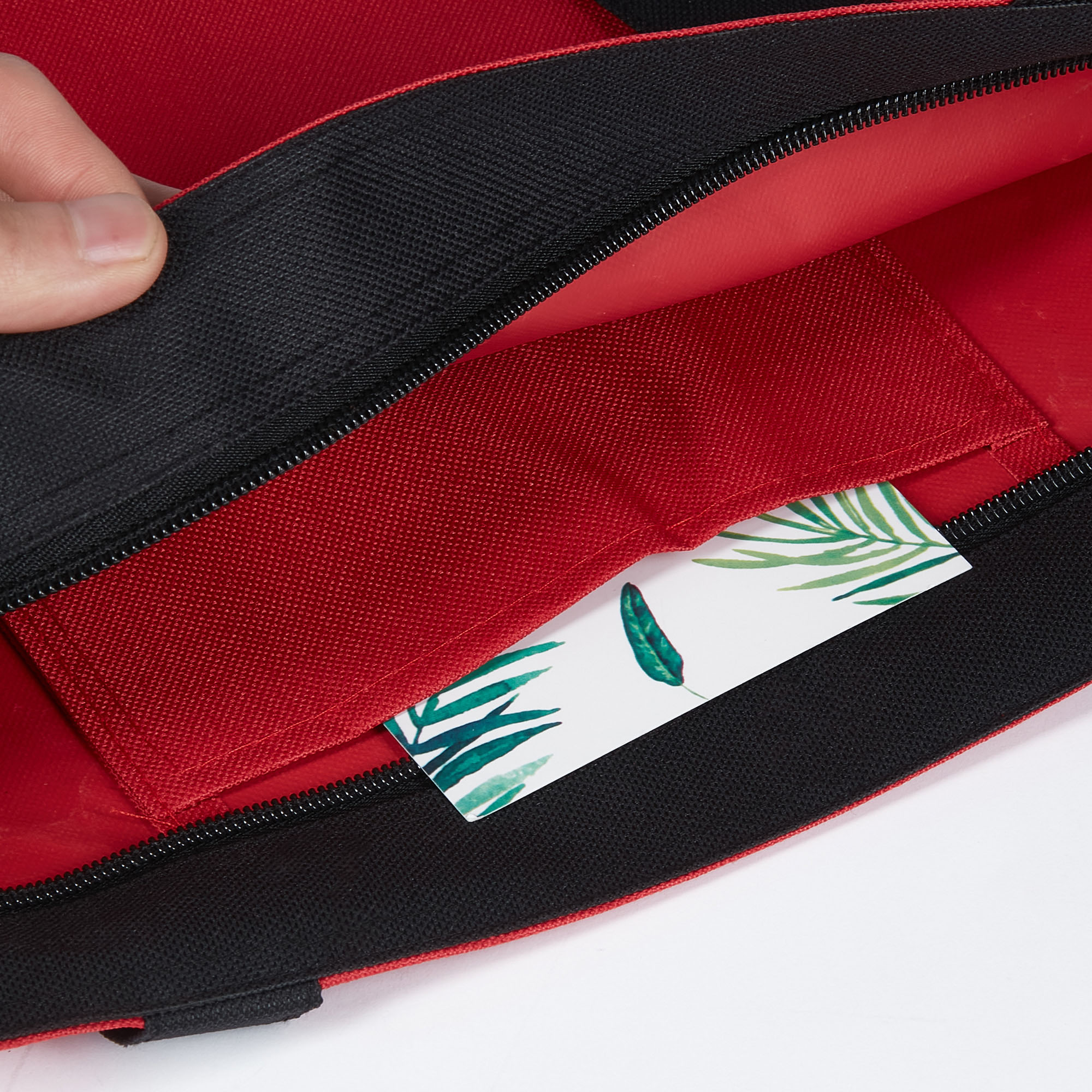 This simple fashion design shopping bag is made of 600D polyester material. Top and bottom part fabric in a different tone which makes the bag more stylish and different from others. A perfect corporate promotional shopping bag with large printing area on the front and back. It has a small pouch inside to keep your keys and mobile phone separate a zip closure opening and 2 PP webbing shoulder handles.