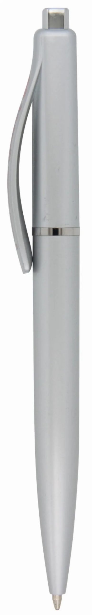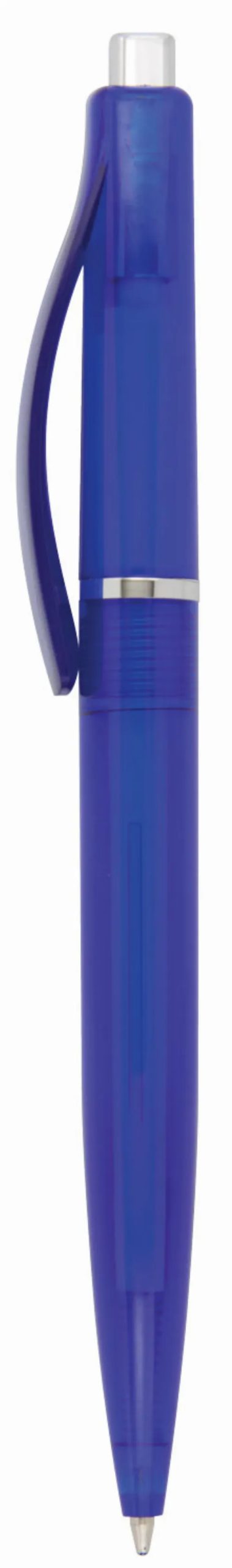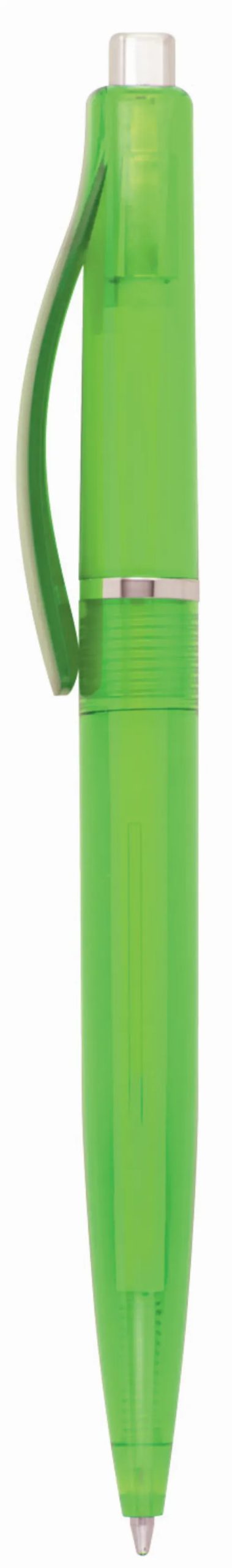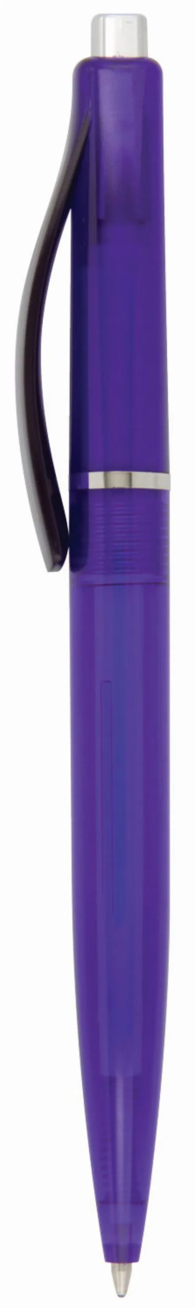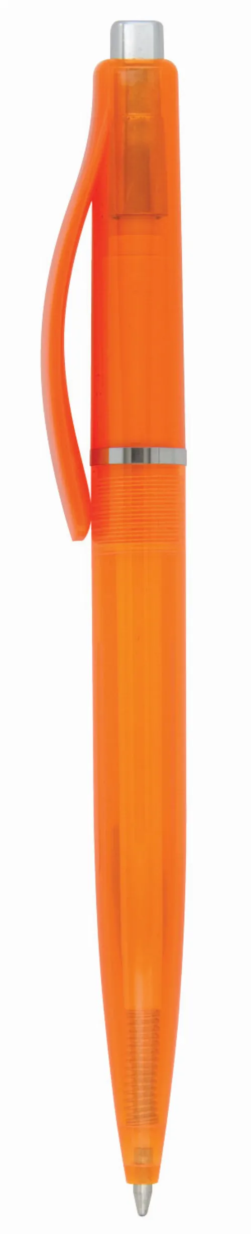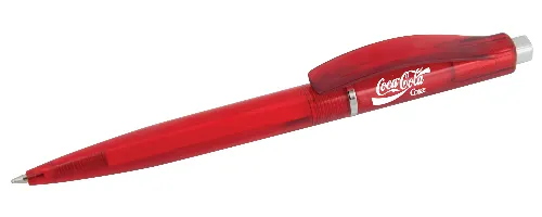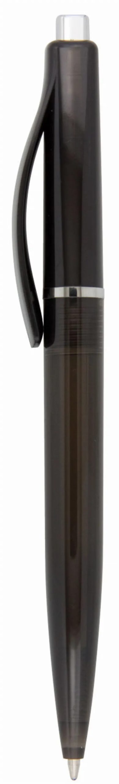 Plastic ballpoint pen with translucent barrel, chrome trims and a large curved clip. Parker style black refill.