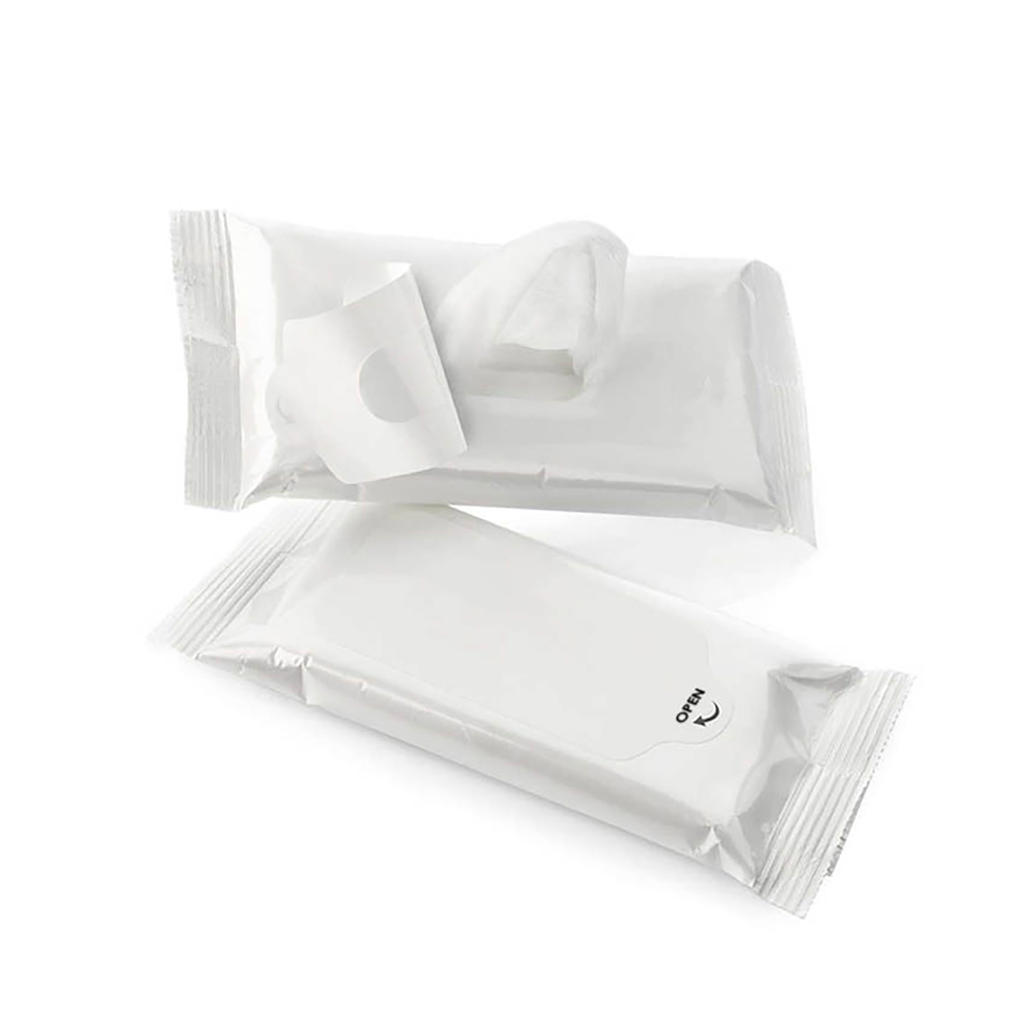 10 anti bacteria alcohol free non woven wet tissues in a plastic pouch with a resealable clear sticker a handy promotional item for car office and travel.