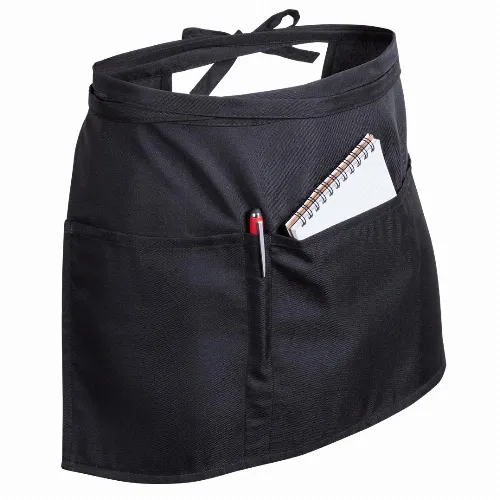 Apron for waist in 100% polyester material, smooth finish in an elegant black.