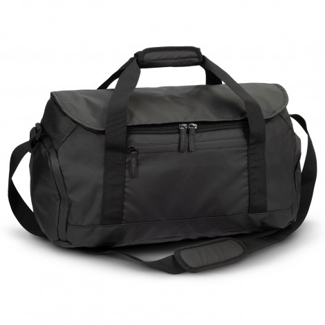 Superior large duffle bag which is manufactured from polycanvas with a water-resistant PU coating and decorative black zips and piping. It has strong woven carry handles with a Velcro cuff and a woven shoulder strap that is adjustable and removable. Aquinas has three zippered external pockets, two of which are shoe bags that can also be used for wet gym gear etc. Other features include a sturdy internal baseboard and strong external plastic feet.