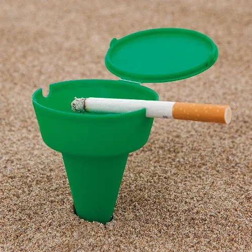 Resistant portable ashtray in bright tones and anchor spike..