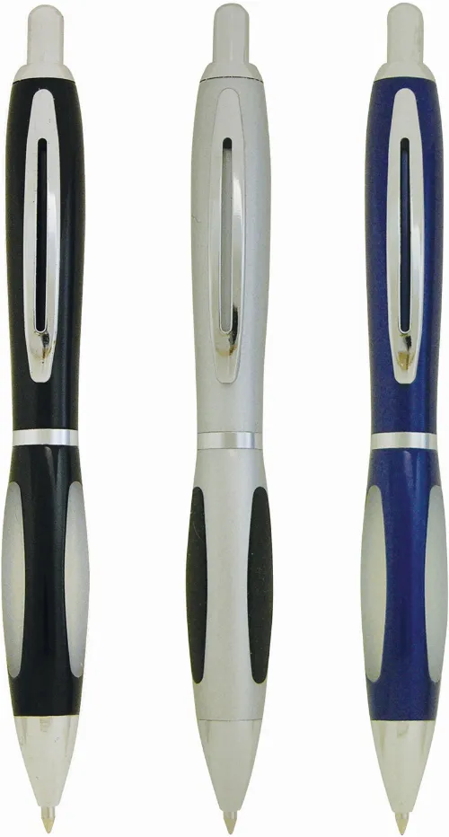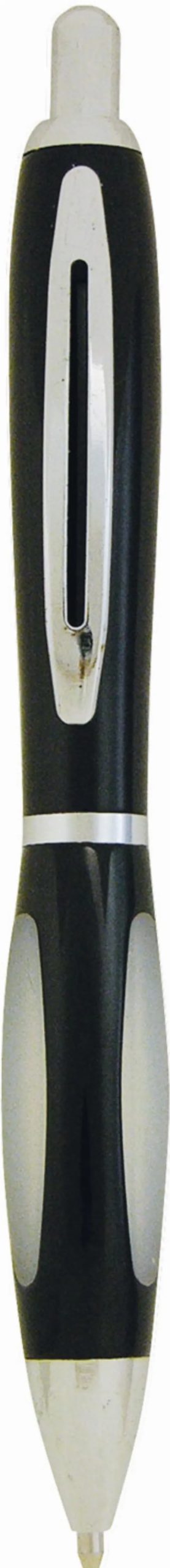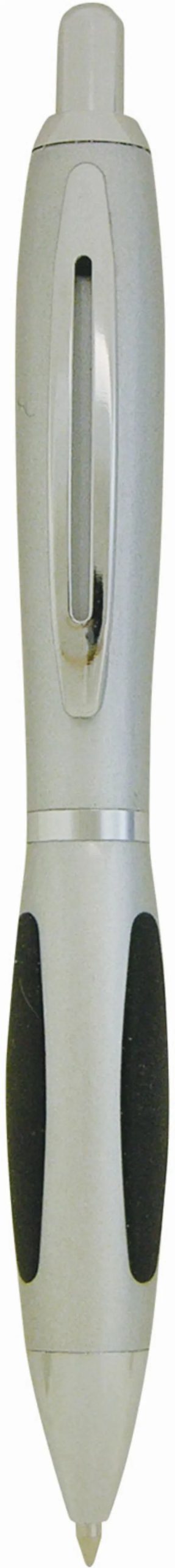 The Aspen has a solid metal casing, silver fittings and rubber grip. Push button with a Parker style black refill.