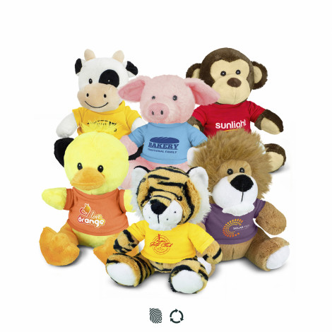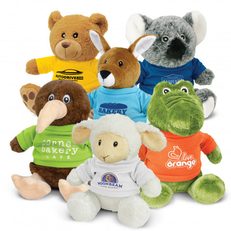 Choose a selection of critters from our plush toy menagerie. Plush animals provide a cute and cuddly branding option and are great for brand recognition and spreading goodwill. These plush toys have embroidered eyes, RPET filling and eleven colour options for the polyester t-shirt. They have also been manufactured to meet with AS/NZS Safety Toy Standards.