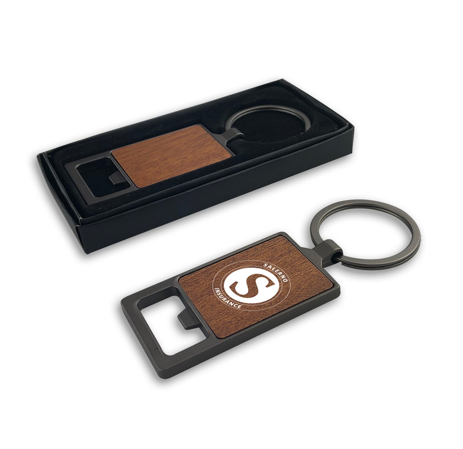 The Autumn Wood Bottle Opener – Square combines premium metal with beautiful natural wood in a sleek square keychain design that doubles as a bottle opener. This deluxe piece adds sophistication to your brand and keeps your logo in hand every day. The natural wood grain and tone vary slightly between pieces, giving each opener its own unique character. A refined choice for corporate gifts, client appreciation or promotional events.
