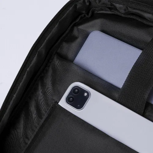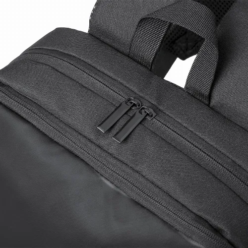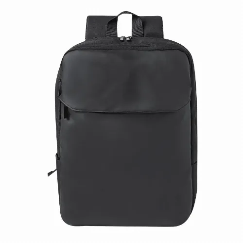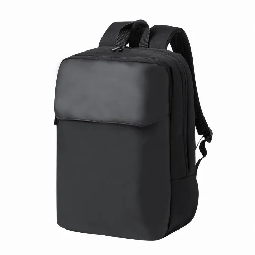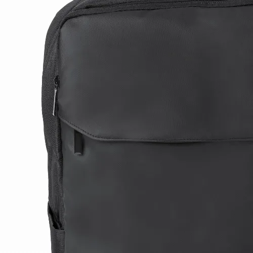 An urban design that includes a padded central pocket with double zip for tabletd up to 10 inches and laptops up to 15 inches, as well as a secondary pocket. In addition, there is a zipped front pocket with a protective flap. The back and shoulder straps are padded, adjustable, and featuring a breathable fabric. It has a trolley fitting and a comfortable top handle. Presented in an individual Recycled bag.