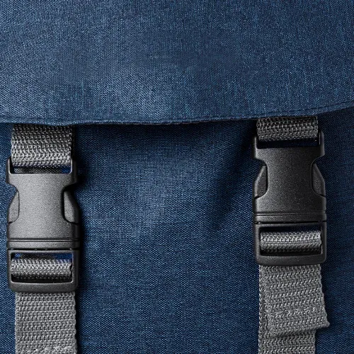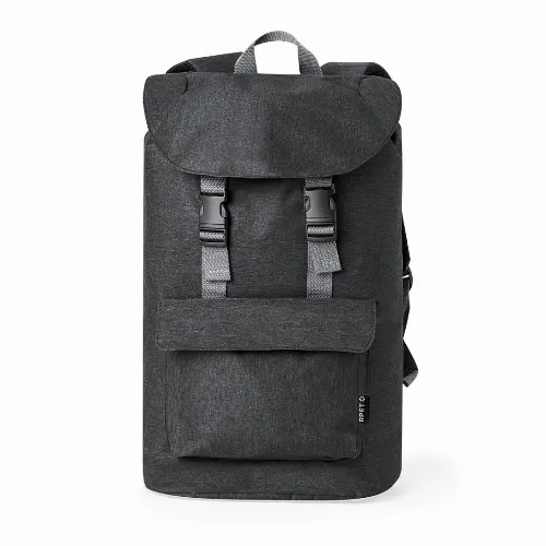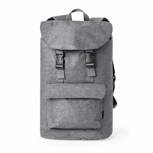 The main pocket closes with a drawstring and has a double zippered flap, while the front pocket has a flap with velcro closure. The shoulder straps are padded and adjustable. Available in several colours and presented individually in a Recycled bag. RPET label on the outer label.RPET material is made from recycled plastic to encourage the reuse of plastic waste and help the sustainability of the planet.