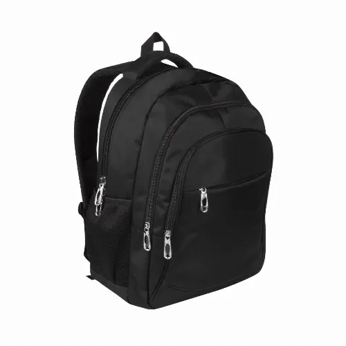Modern style, with 4 handy outside pockets in different sizes, easy to open and close, with black colour zips. Inside padded compartment for laptop up to 15 inches, with two mesh compartments on the outside (one in each side), easily accessible. Comfortable to carry due to its padded handles and the ergonomically padded back.