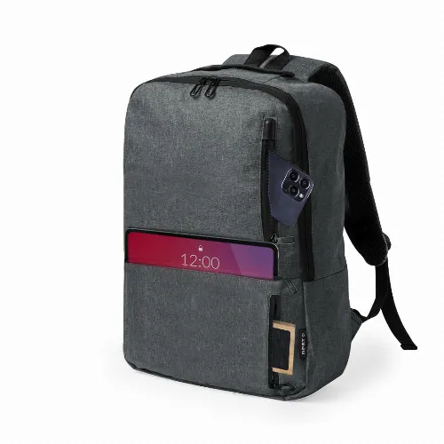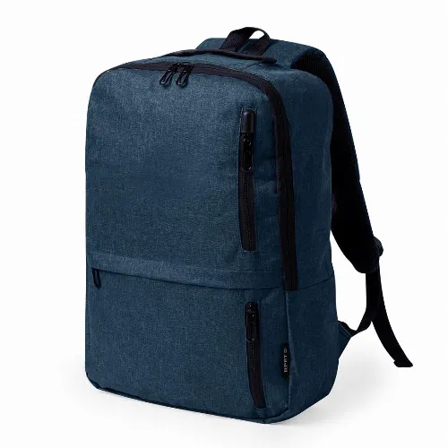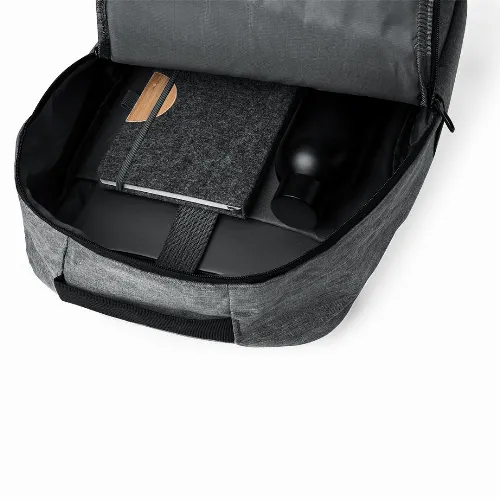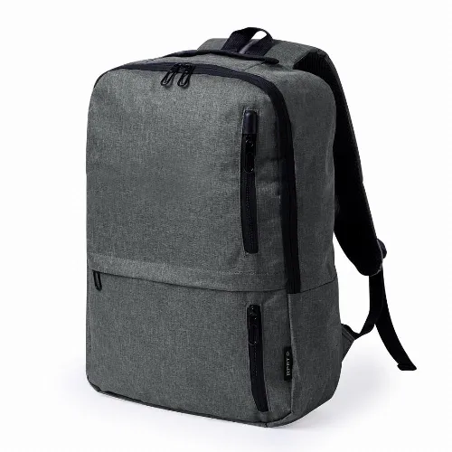 Equipped with a double-pull zip closure and three quick-access front pockets. Inside, it features padded compartments designed to fit up to a 10 inch tablet and 15 inch laptop. The shoulder straps are padded and adjustable for comfort. It also features a top strap and side pocket for added functionality. Available in three stylish colours, with black zips. RPET badge on label. Presented in an individual Recycled bag. RPET material is made from recycled plastic to encourage the reuse of plastic waste and help the sustainability of the planet.
