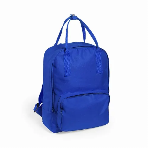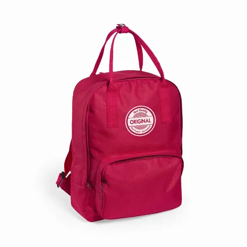 600D polyester backpack in bold urban design, with resistant matching color handles, zipper closure set and front pocket..