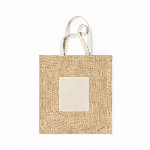 Bag in resistant combination of 240g/m2 jute body and cotton handles, both in natural tones.