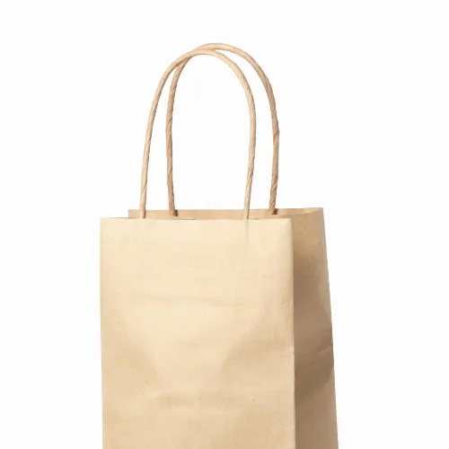 Bag in natural paper finish of 100g/m2 with reinforced short handles and gussets.