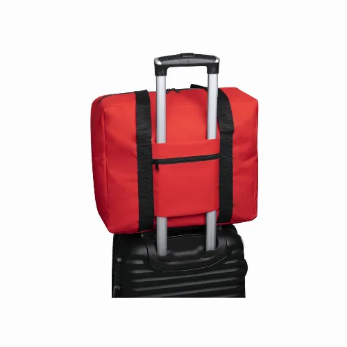 Main compartment with double zipper pullers, including trolley adjusting strap, resistant nylon handles and one side pocket with zipper closure.