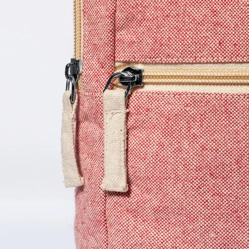 Main compartment and outside pocket with zipper closure and recycled cotton logo on the outside label. GRS (Global Recycled Standard) certification available, guaranteeing the recycled origin of the material used to manufacture the product. Available in a wide range of colors.