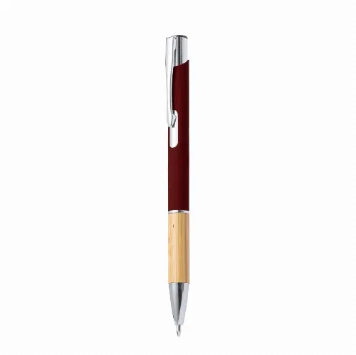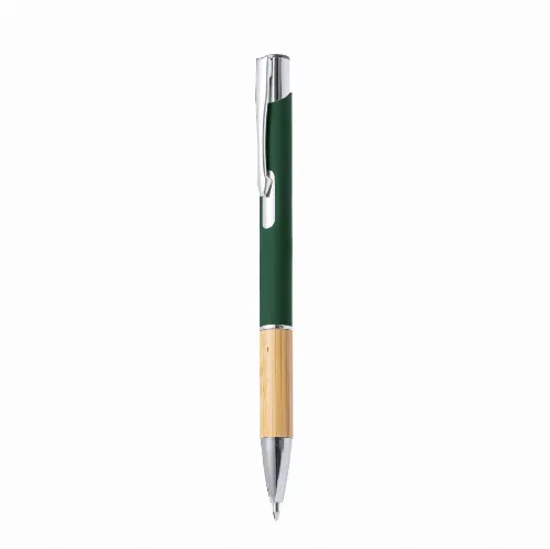 Durable aluminium barrel with rubberised finish and bamboo grip, with barrel in a wide range of distinctive colours. Metal clip and blue ink. Presented in an individual recycled pouch.