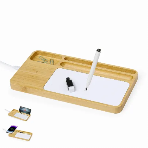 Smartphone holder function and extra storage compartment, with integrated memo board and black ink marker with eraser in the hood. Large branding surface and presented in an individual eco-design box made of kraft cardboard. Instructions manualin English and Spanish.Materials such as bamboo encourage the use of natural raw materials, reducing pollutant emissions. It comes from a highly resistant and versatile plant with rapid growth and regeneration, making of it an excellent alternative to traditional wood.Manufactured according to RoHS standards and in compliance with the following safety requirements: Overheating protection system. Over-charge protection system. Blocking system to prevent short circuits.
