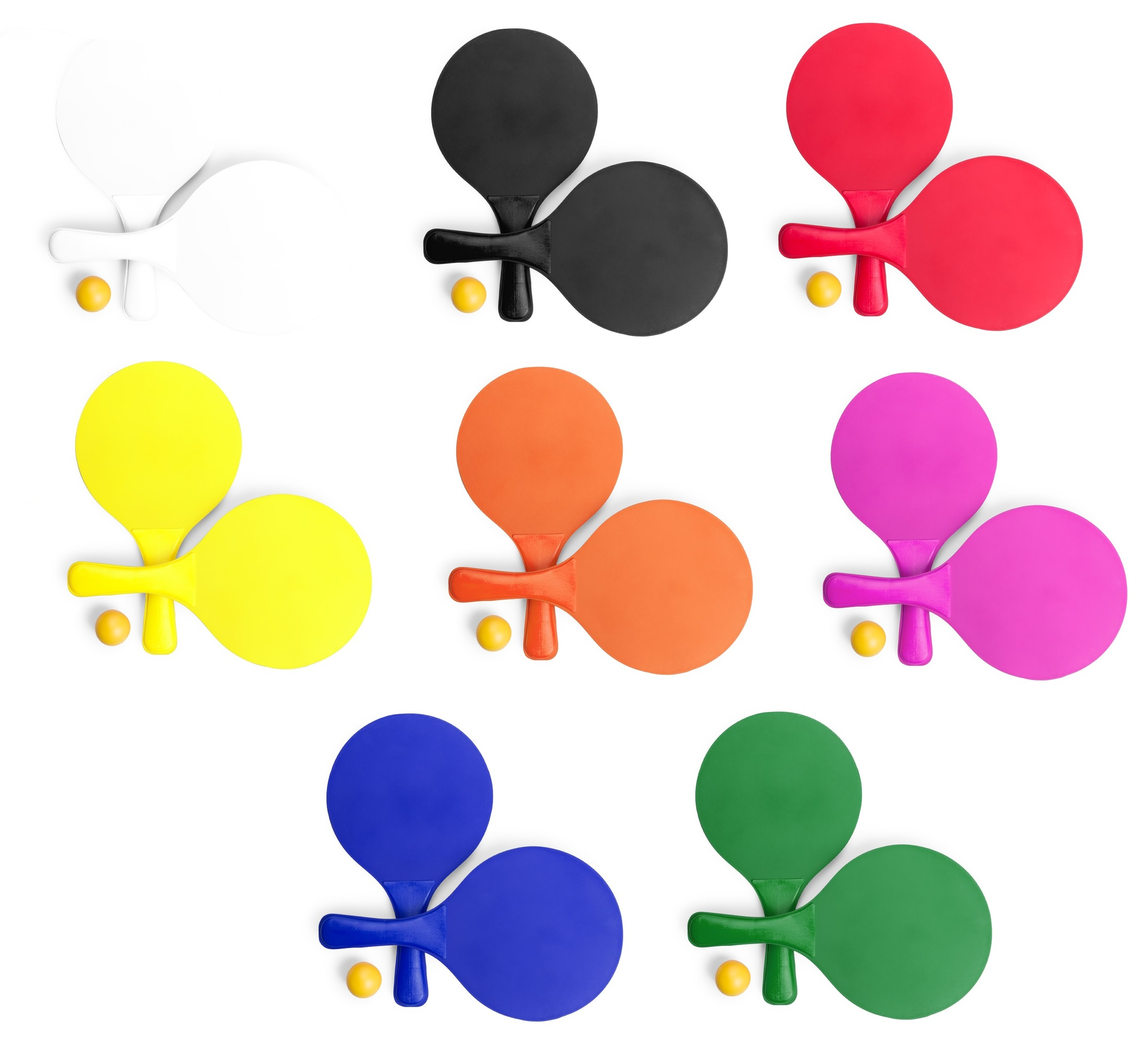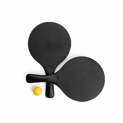 Pair of beach rackets of high quality in natural wood of varied range in bright tones.