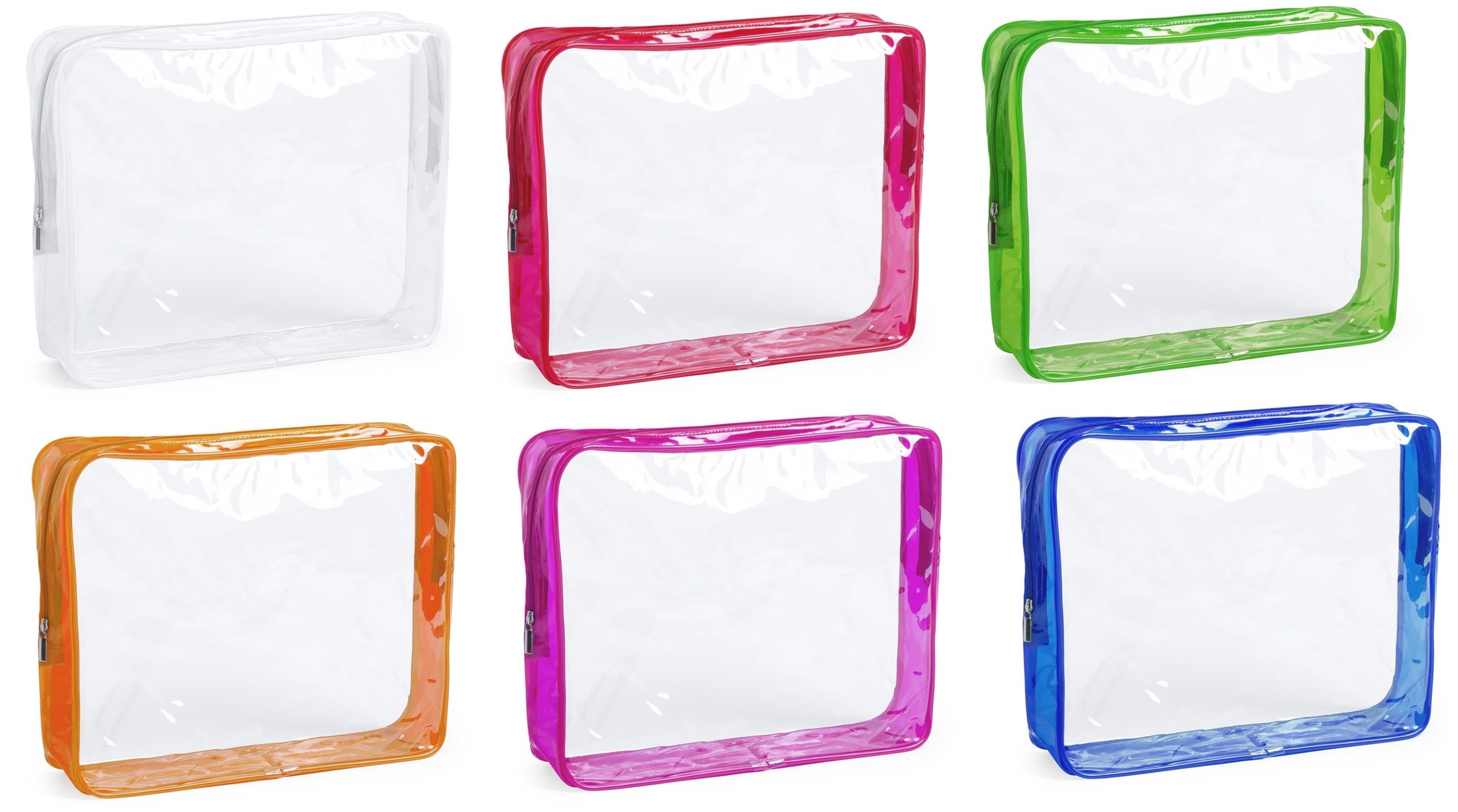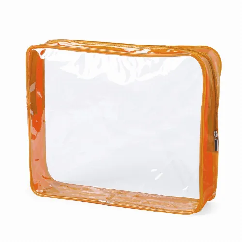 Multi purpose beauty bag in resistant PVC material, combining transparent and translucent materials.