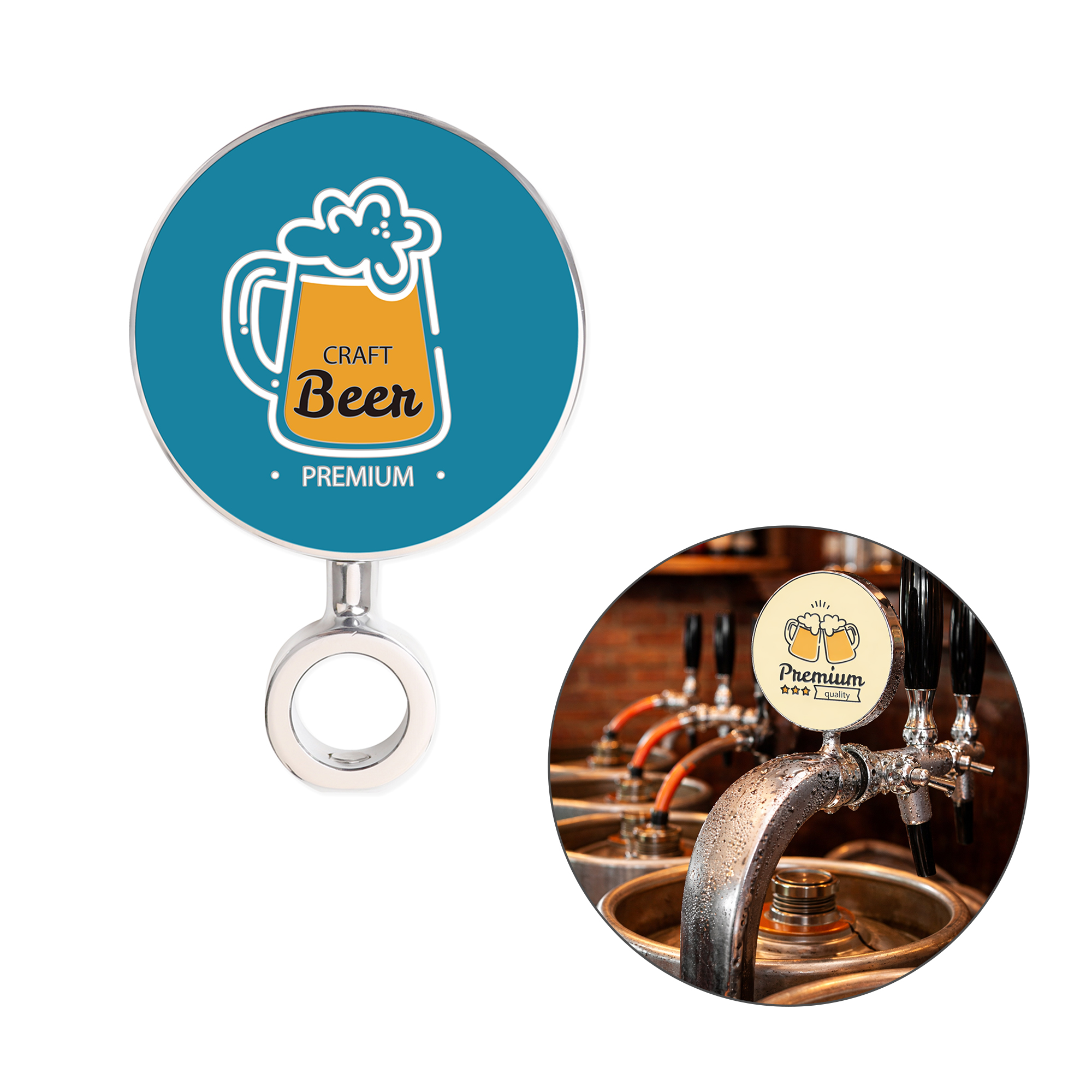 Get your brand seen at the bar with our new Beer Tap Badges! Made from quality zinc alloy material, with enamel ink filled badges to highlight your design. There is an adjustable screw on the fixed ring below the beer badge, which is easy to adjust and fix the badge position on your beer tap. Perfect branding item for clubs, bars or any venue.