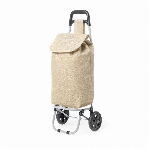Made of resistant jute, encouraging the use of natural materials and thus helping the sustainability of the planet. With reinforced handle, tubular metal body, rear zip pocket and rubber protection pads. High quality, reinforced wheels.