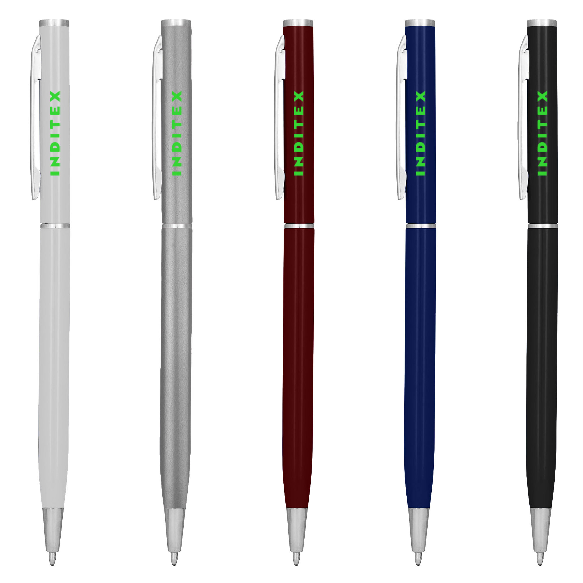 Slim metal hotel pen twist action aluminium barrel with shiny silver trim. A perfect budget metal pen for hotel and motel. It has high quality German manufactured black ink refill 1200 meters writing distance tungsten carbide ball provides you with quality writing.