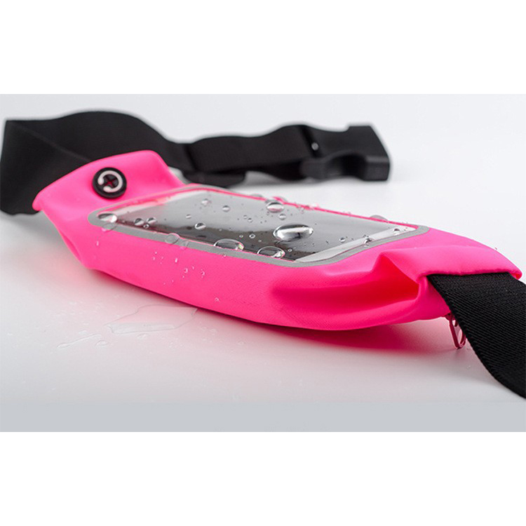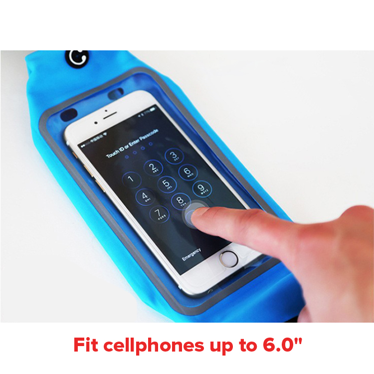 Our best sports waist bag with clear touch screen, allows you to stop worrying about your keys jumping around in your pocket when going to the gym or running. Our best sports waist bag gives you easy access to your device no matter what you are doing. Have your logo or company name screen printed on the front. Just adjust the belt to fit you, drop your stuff in, and you’ll be ready to go.